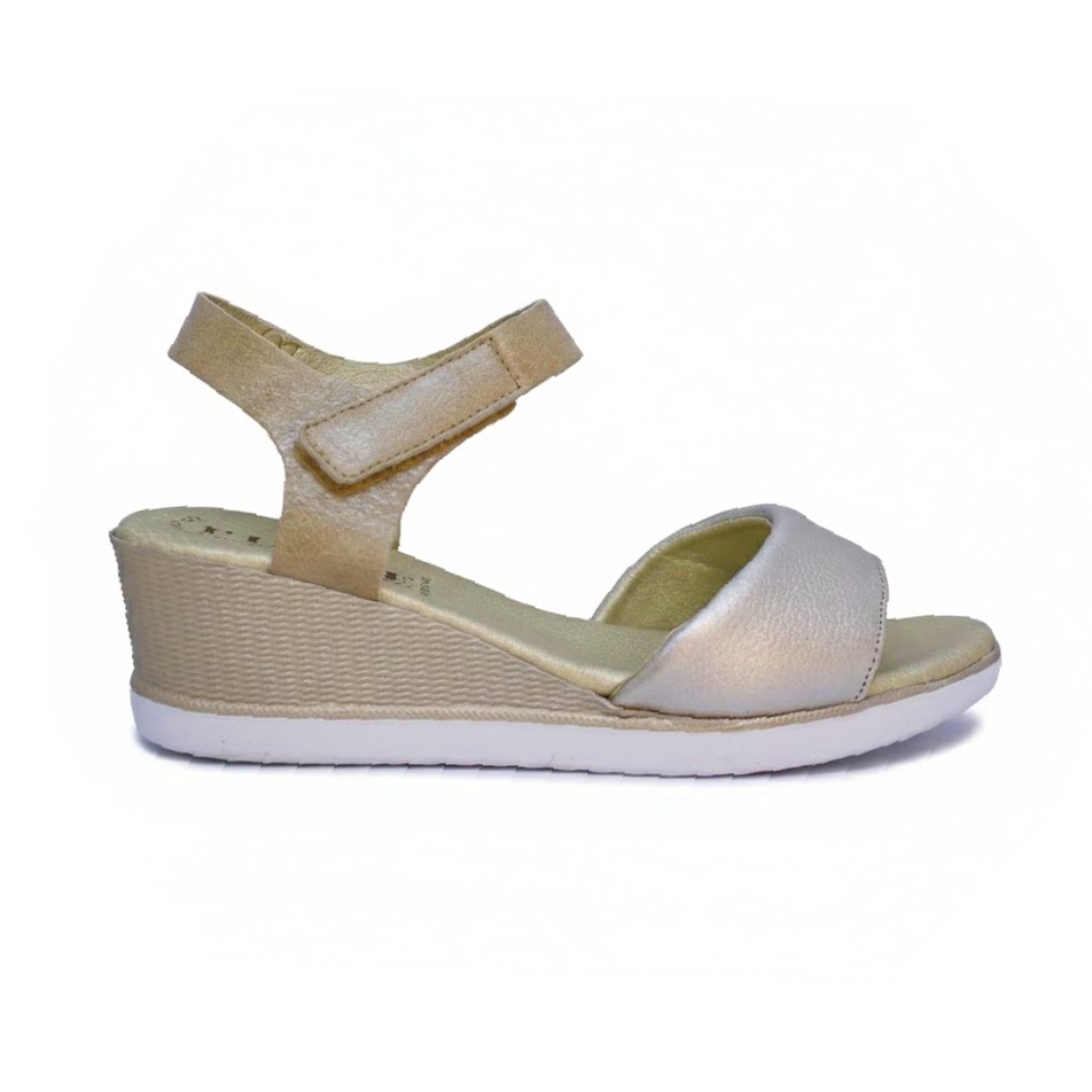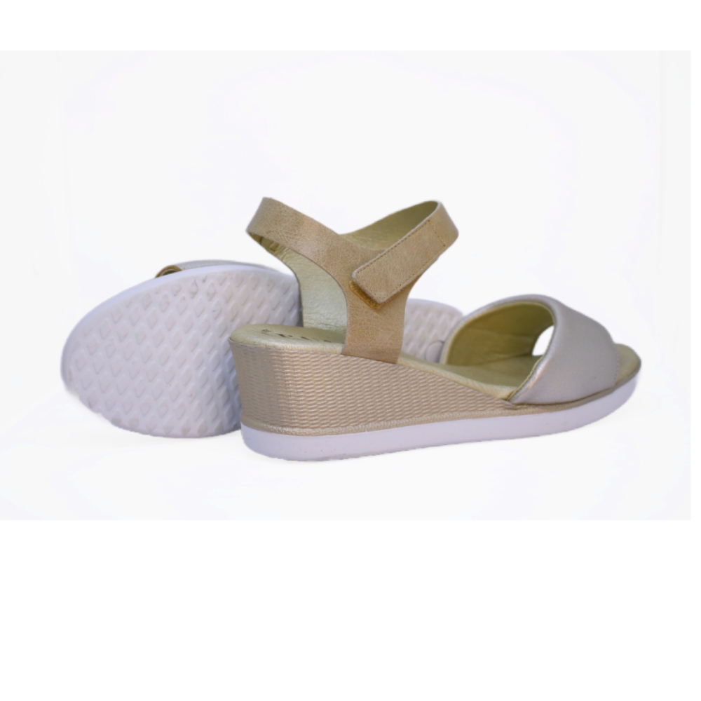 Piel de Primera Calidad: Confeccionada en piel suave con un elegante acabado platino que se adapta con delicadeza a la anatomía del pie.