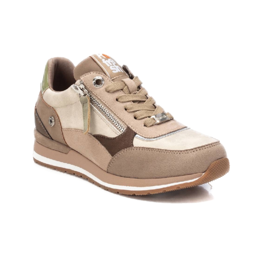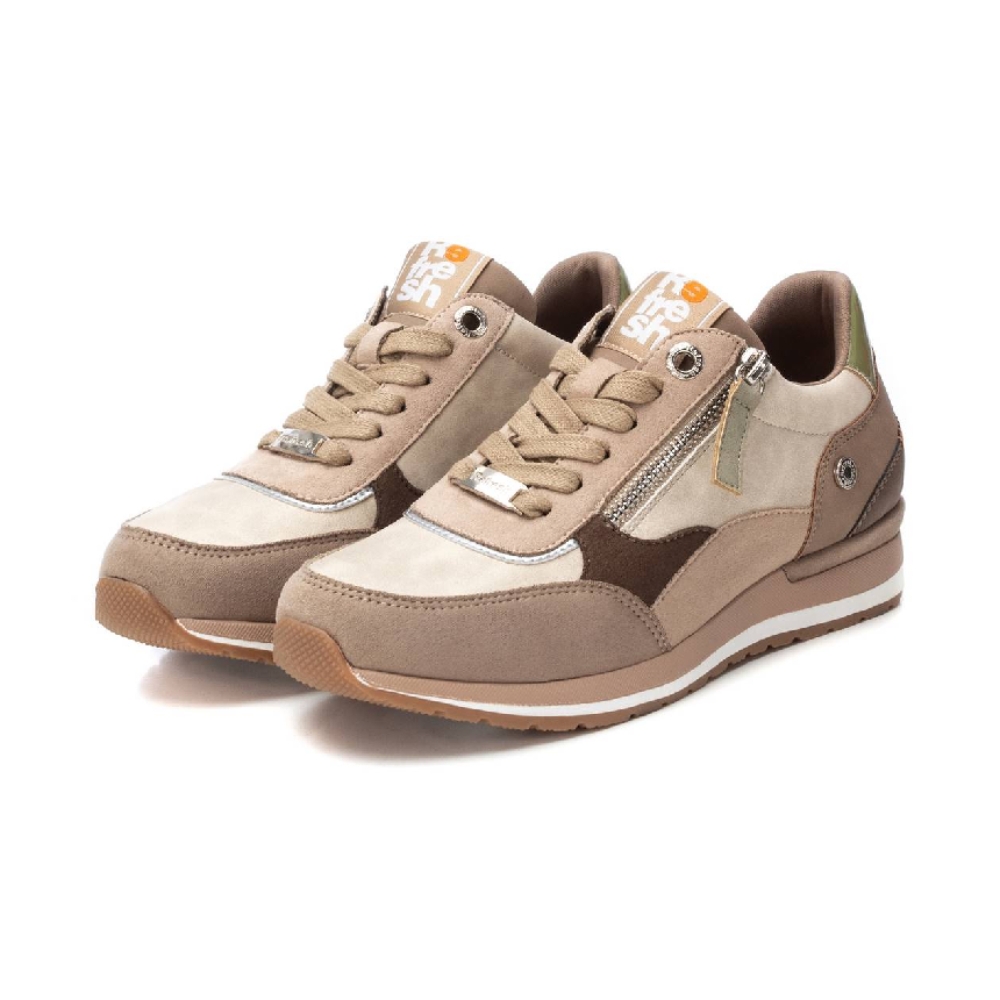 Zapatilla de mujer, de la marca Refresh. Fabricada en antelina. Cierre mediante cremallera lateral y cordones ajustables. Suela de goma antideslizante. Con plantilla extraíble. Este modelo ha obtenido el certificado vegano por la organización mundial PETA (Organización de los derechos de los animales).