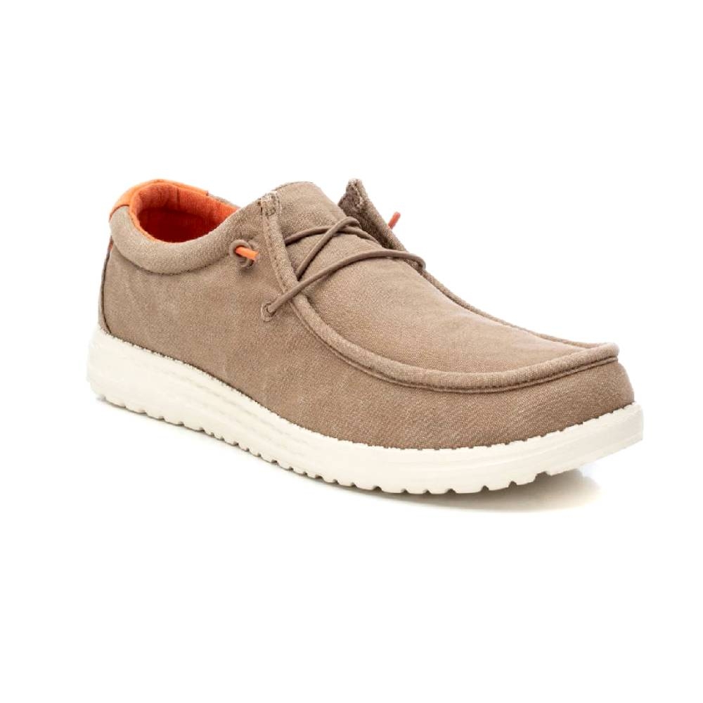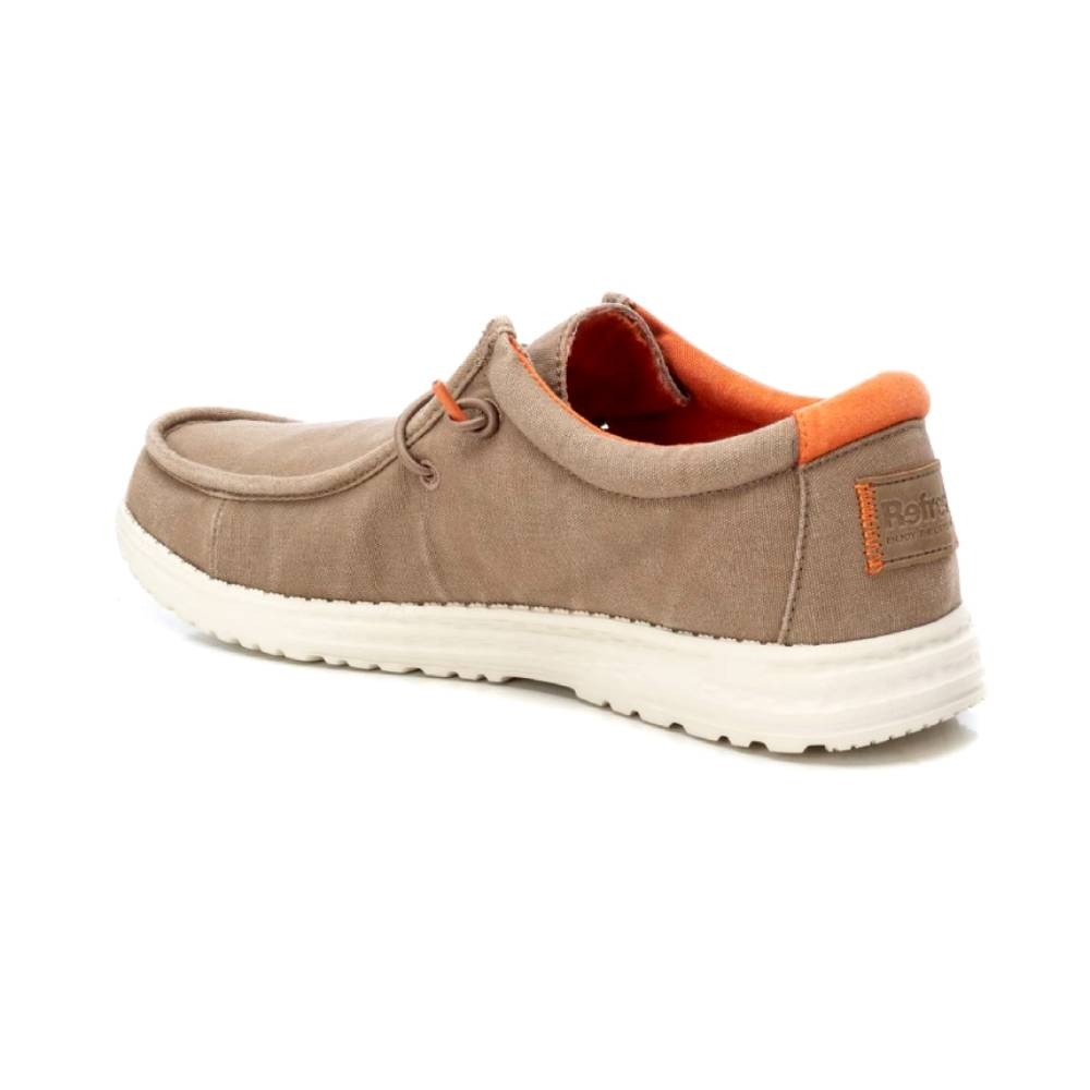 Zapatilla de hombre, de la marca Refresh. Fabricada en lona con acabado lavado. Ajuste mediante cordones elásticos. Cómoda suela flexible y ligera de goma antideslizante. Este modelo ha obtenido el certificado vegano por la organización mundial PETA (Organización de los derechos de los animales).