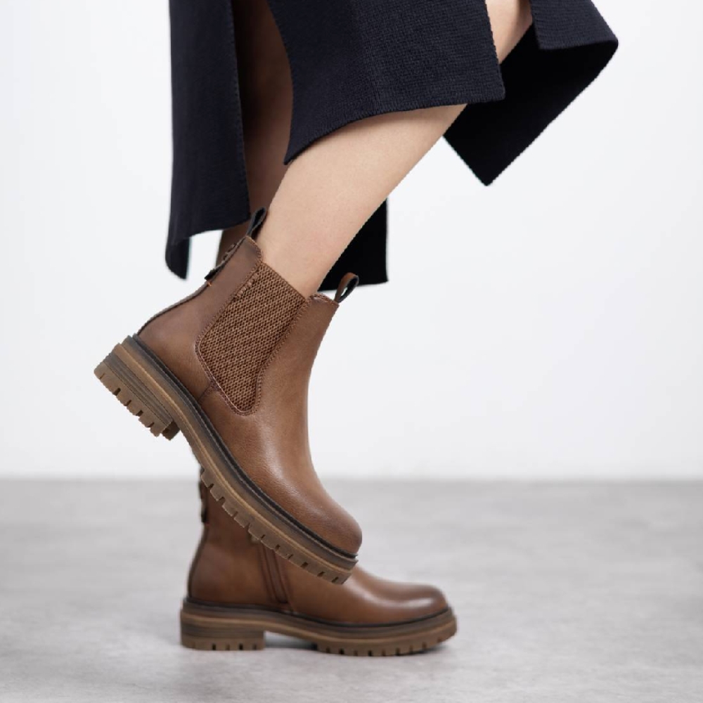 Botín de mujer, de la marca Refresh. Fabricada en material que imita a la piel. Botín tipo chelsea con cremallera interior. Tirador delantero y trasero para facilitar la puesta. Cierre mediante cremallera interior. Gruesa suela de goma antideslizante. Con plantilla extraíble. Este modelo ha obtenido el certificado vegano por la organización mundial PETA (Organización de los derechos de los animales).