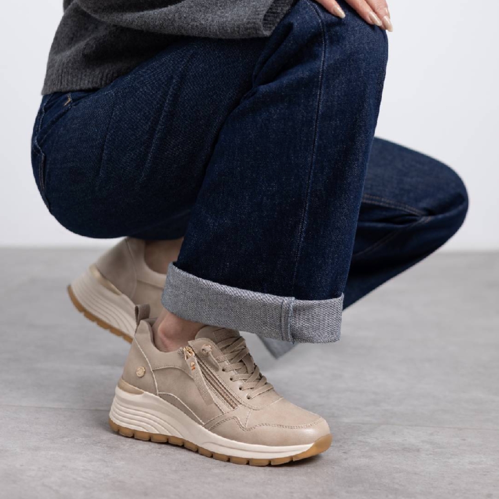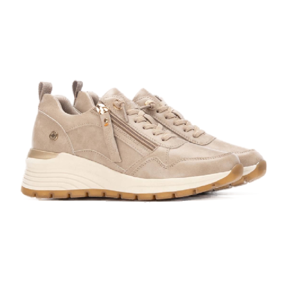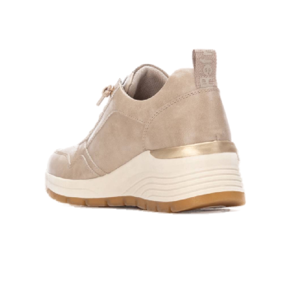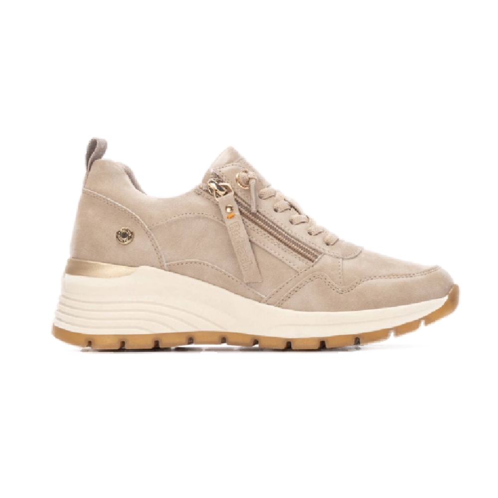 Zapatilla de mujer, de la marca Refresh. Fabricada en material que imita a la piel. Cierre mediante cremallera en el lateral. Cordones elásticos al tono. Tirador trasero para facilitar la puesta. Con