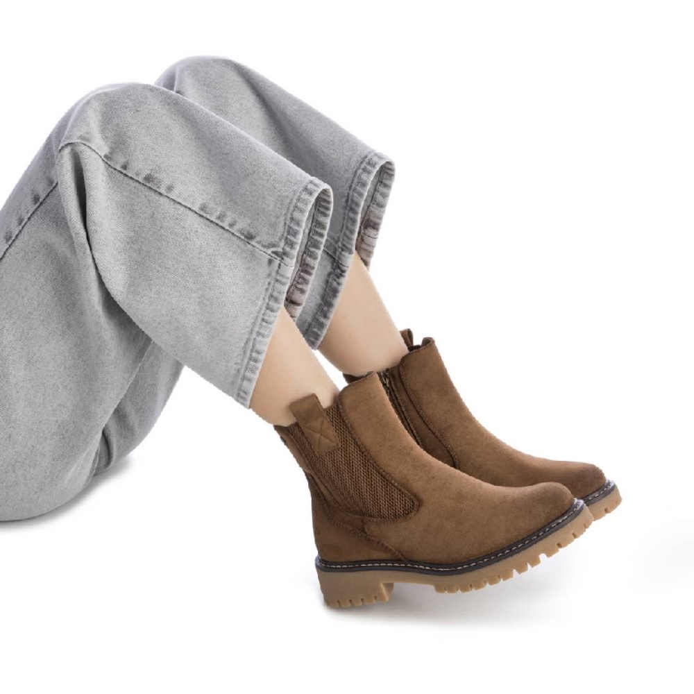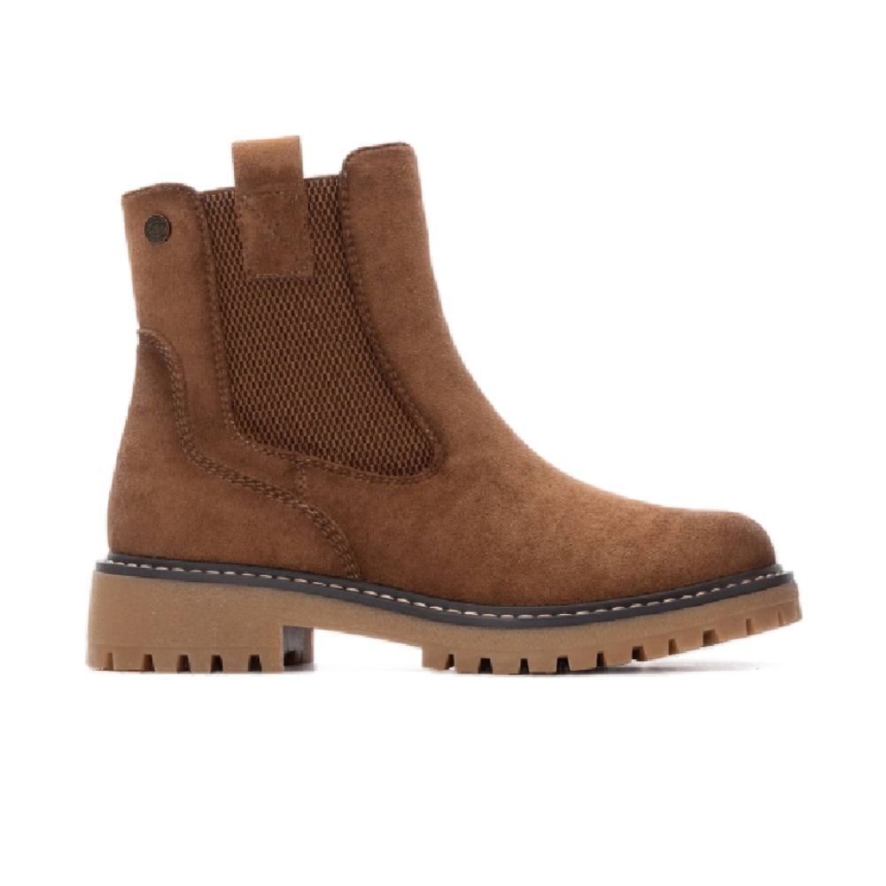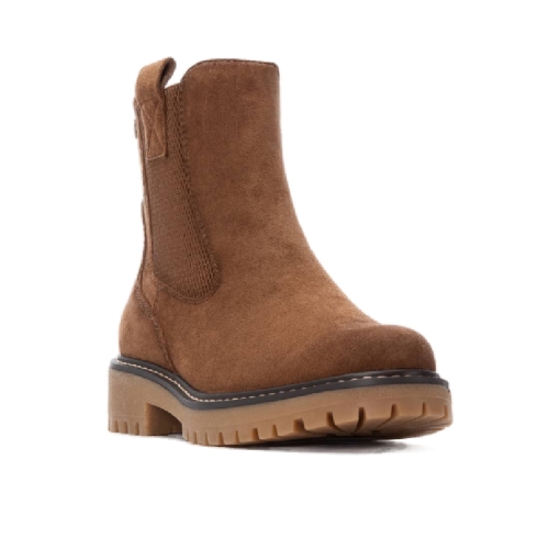Botín de mujer tipo chelsea, de la marca Refresh. Fabricado en suave antelina. Cierre mediante cremallera. Tirador lateral para facilitar la puesta. Gruesa suela de goma antideslizante. Con plantilla extraíble. Este modelo ha obtenido el certificado vegano por la organización mundial PETA (Organización de los derechos de los animales).