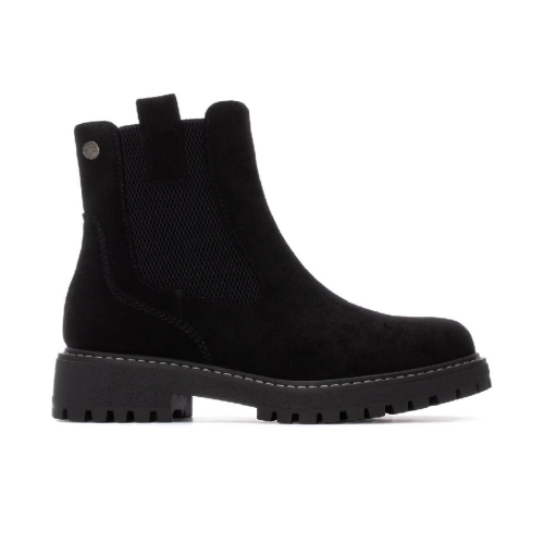 Botín de mujer tipo chelsea, de la marca Refresh. Fabricado en suave antelina. Cierre mediante cremallera. Tirador lateral para facilitar la puesta. Gruesa suela de goma antideslizante. Con plantilla extraíble. Este modelo ha obtenido el certificado vegano por la organización mundial PETA (Organización de los derechos de los animales).