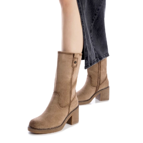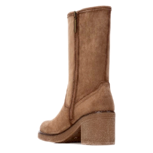Botín de caña media de mujer, marca Refresh. Fabricado en suave antelina. Cierre mediante cremallera interior. Altura de la caña de 23 cm. Con tacón de goma de 7 cm de altura. Con plantilla extraíble. Este modelo ha obtenido el certificado vegano por la organización mundial PETA (Organización de los derechos de los animales).