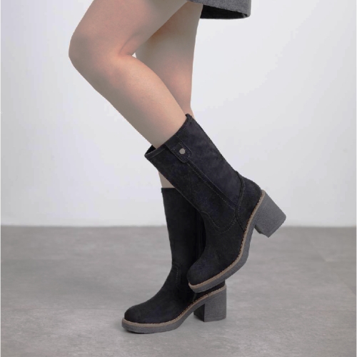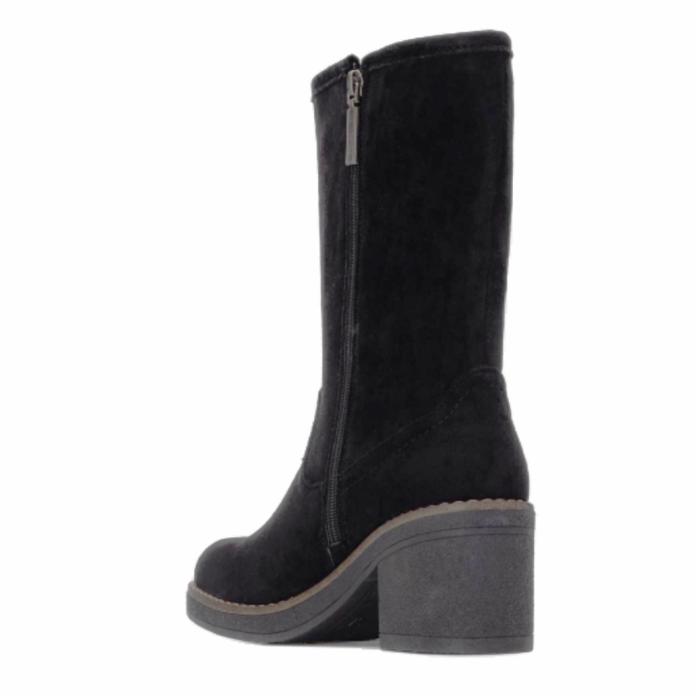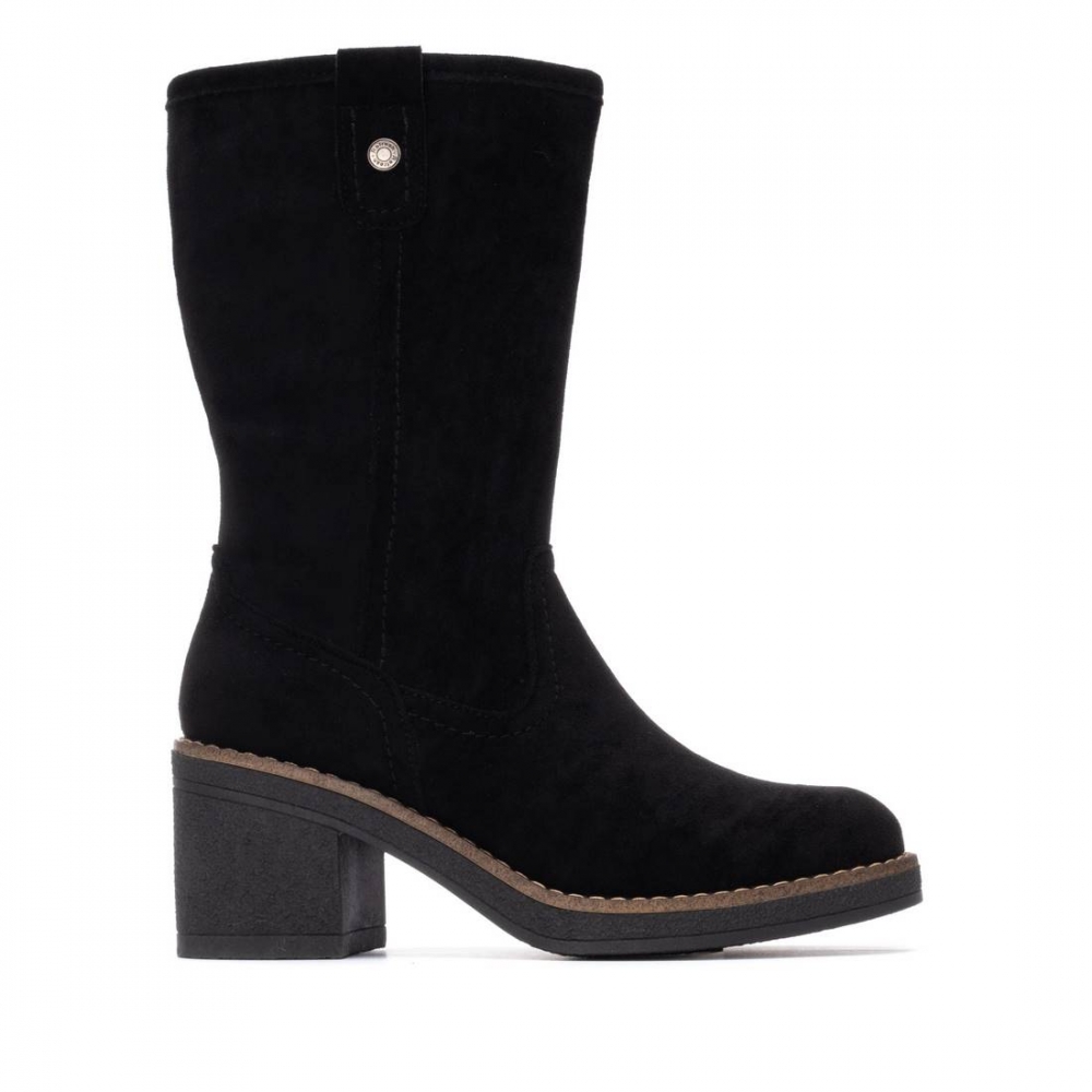 Botín de caña media de mujer, marca Refresh. Fabricado en suave antelina. Cierre mediante cremallera interior. Altura de la caña de 23 cm. Con tacón de goma de 7 cm de altura. Con plantilla extraíble. Este modelo ha obtenido el certificado vegano por la organización mundial PETA (Organización de los derechos de los animales).