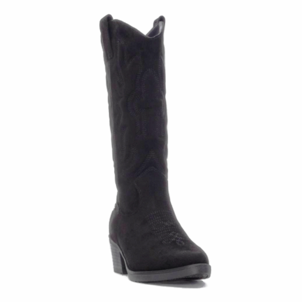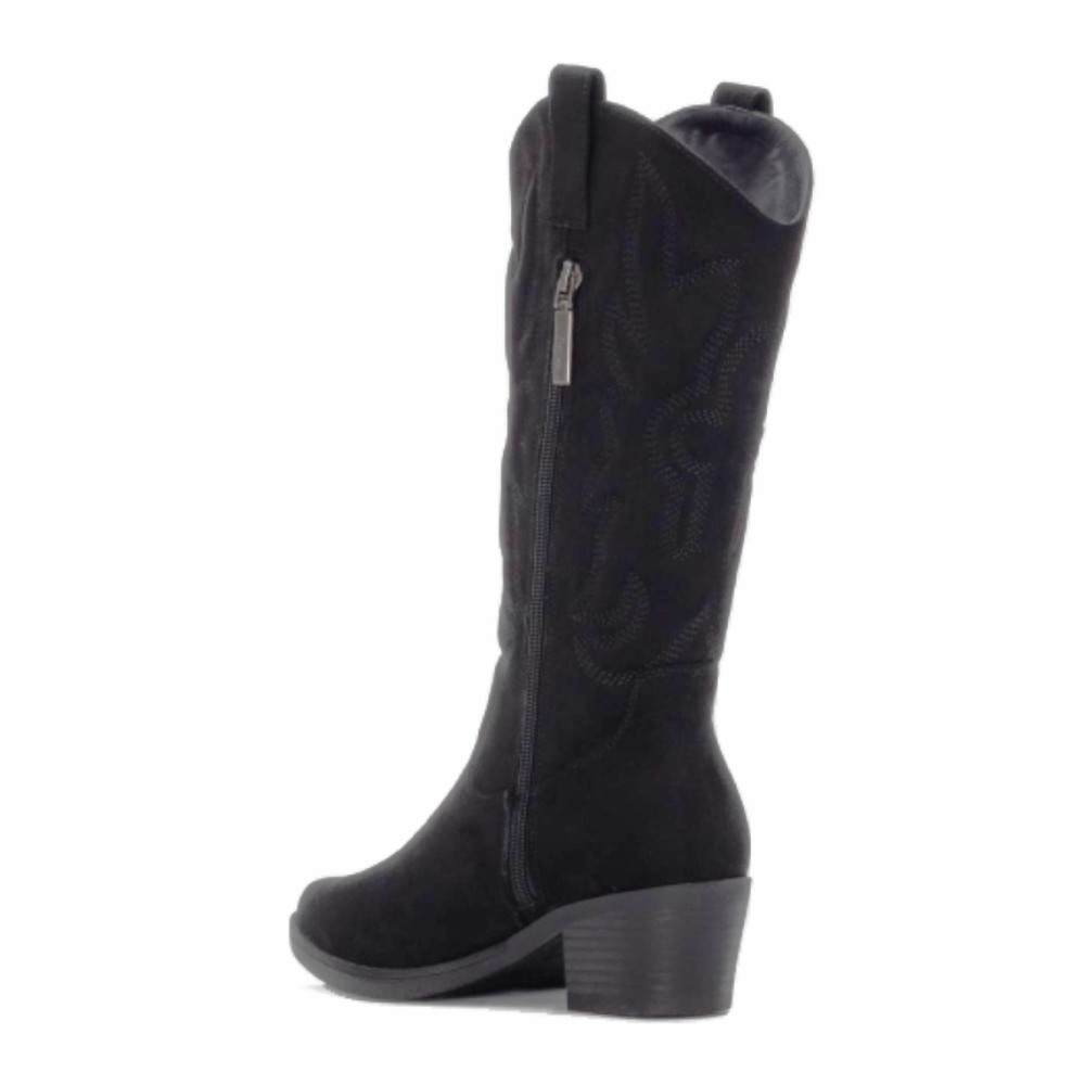 Bota de mujer, de la marca Refresh. Fabricado en suave antelina con un elegante dibujo marcado por pespunte, añadiendo un toque artesanal. Cierre de cremallera. Tacón tipo cowboy de 5 cm de altura. Con plantilla extraíble. Este modelo ha obtenido el certificado vegano por la organización mundial PETA (Organización de los derechos de los animales).