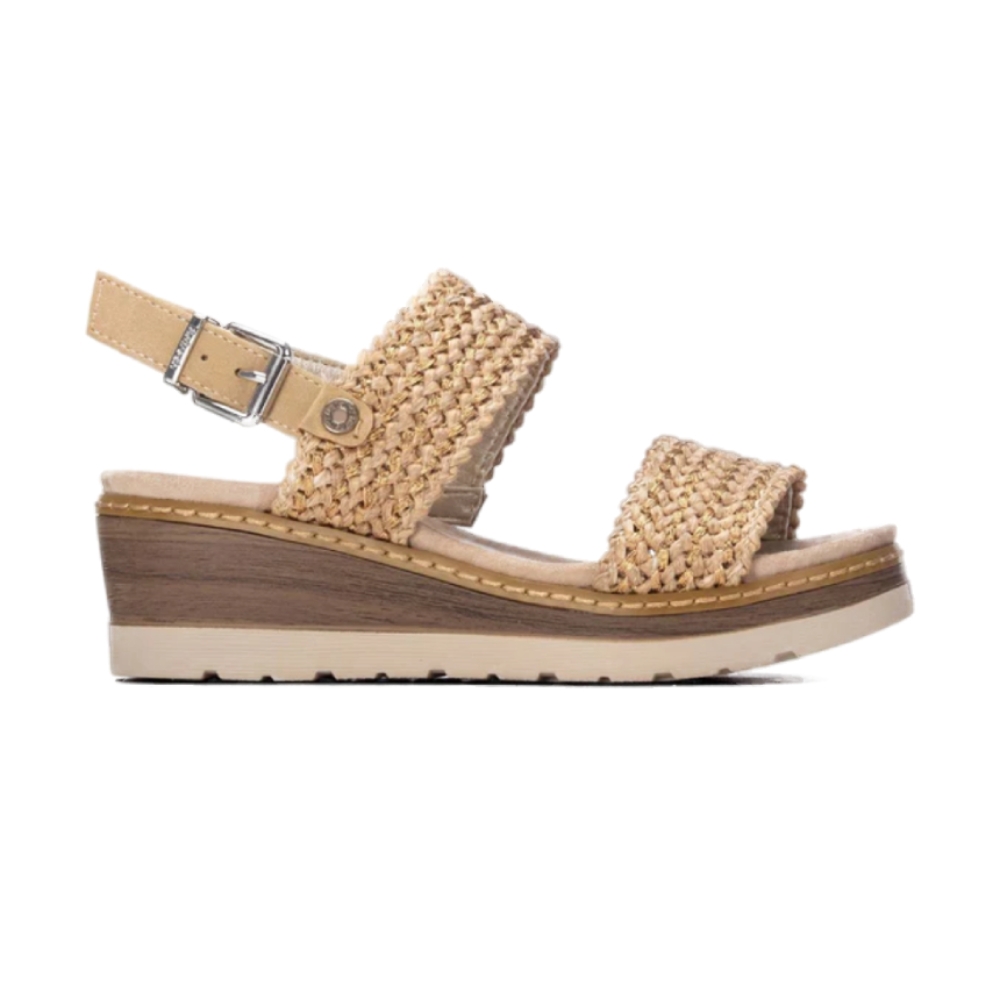Disfruta del equilibrio perfecto entre estilo y comodidad con estas sandalias de cuña. Diseñadas con una estructura de tiras ajustables y una plantilla acolchada, son ideales para el uso diario. Su suela con acabado tipo esparto o rafia aporta un toque veraniego y artesanal, mientras que el tono beige neutro permite combinarlas fácilmente con cualquier atuendo, desde vestidos hasta vaqueros.