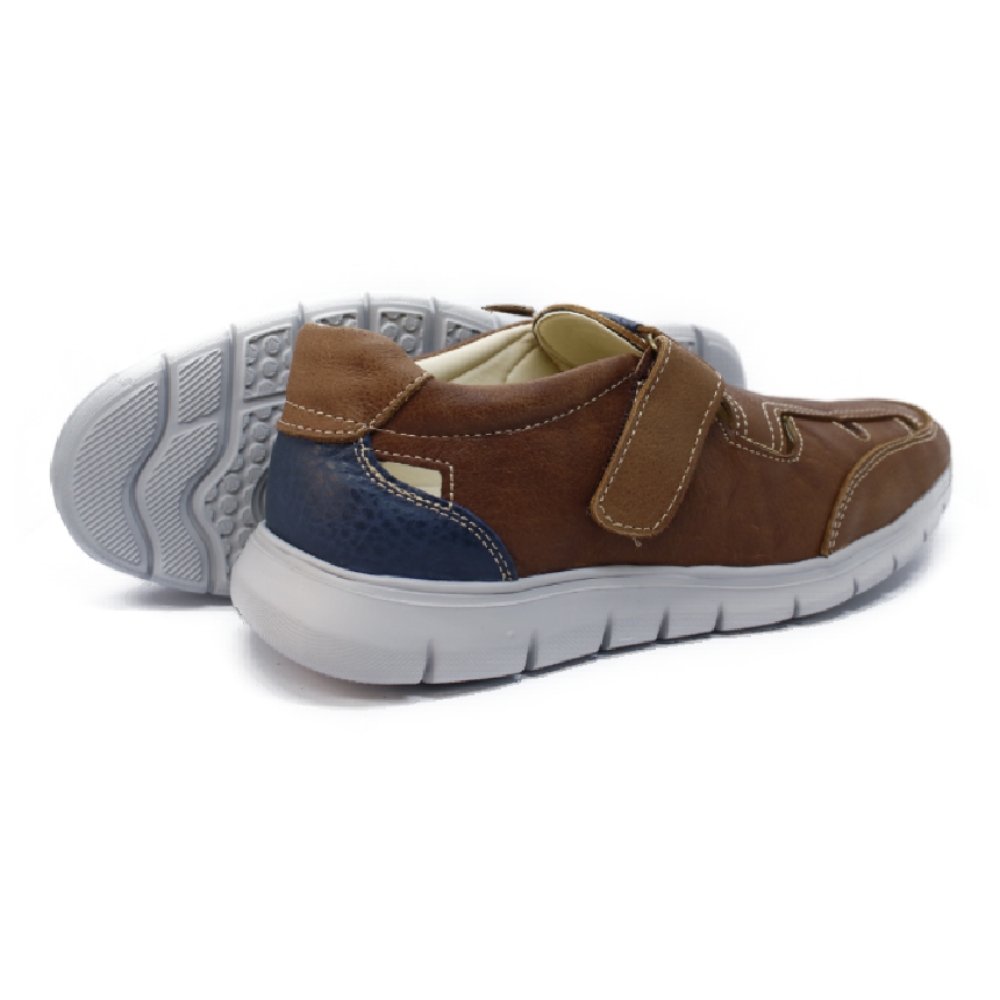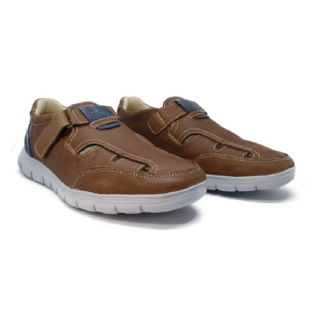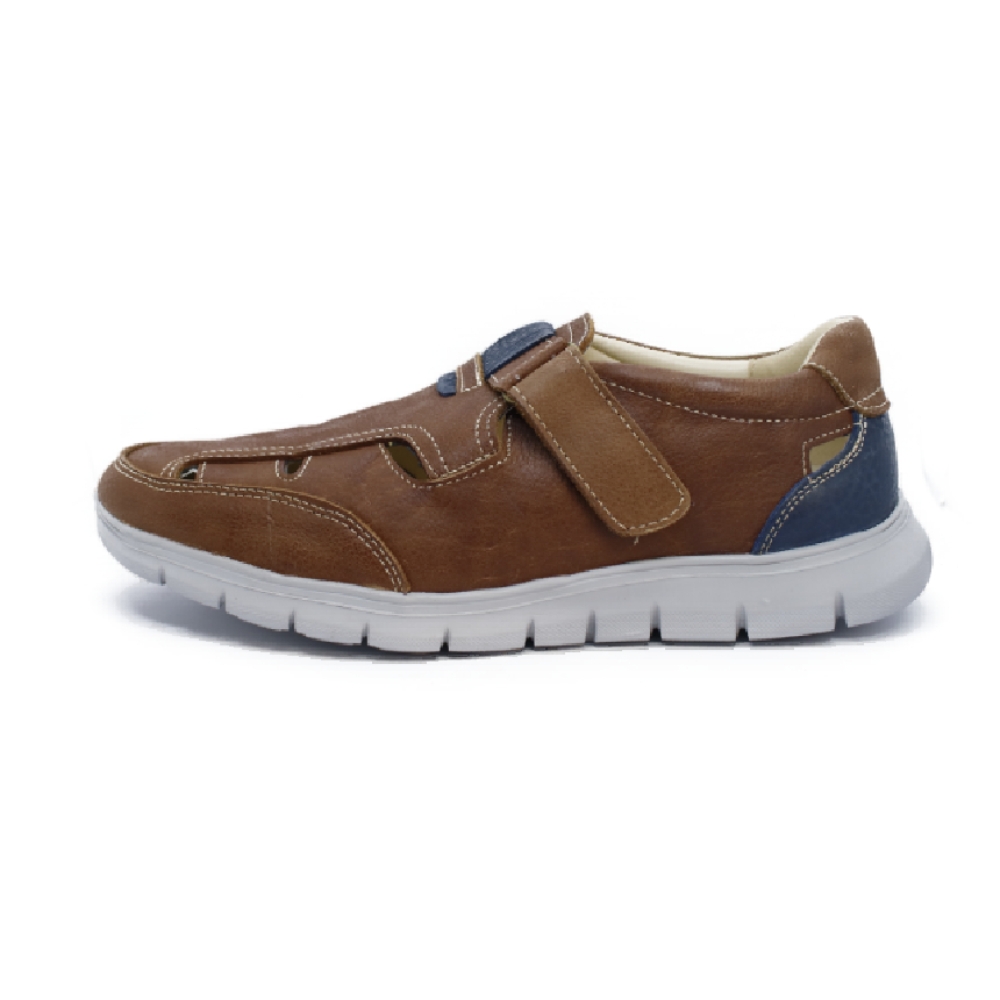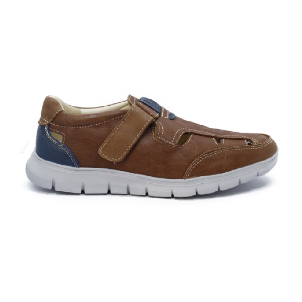 Sandalia de piel cerrada para hombre en color cuero. Características: Cierre tira adhesiva, altura de 3 cm, zapato de estilo casual, suela de goma, exterior piel, forro interior textil y plantilla extraíble.