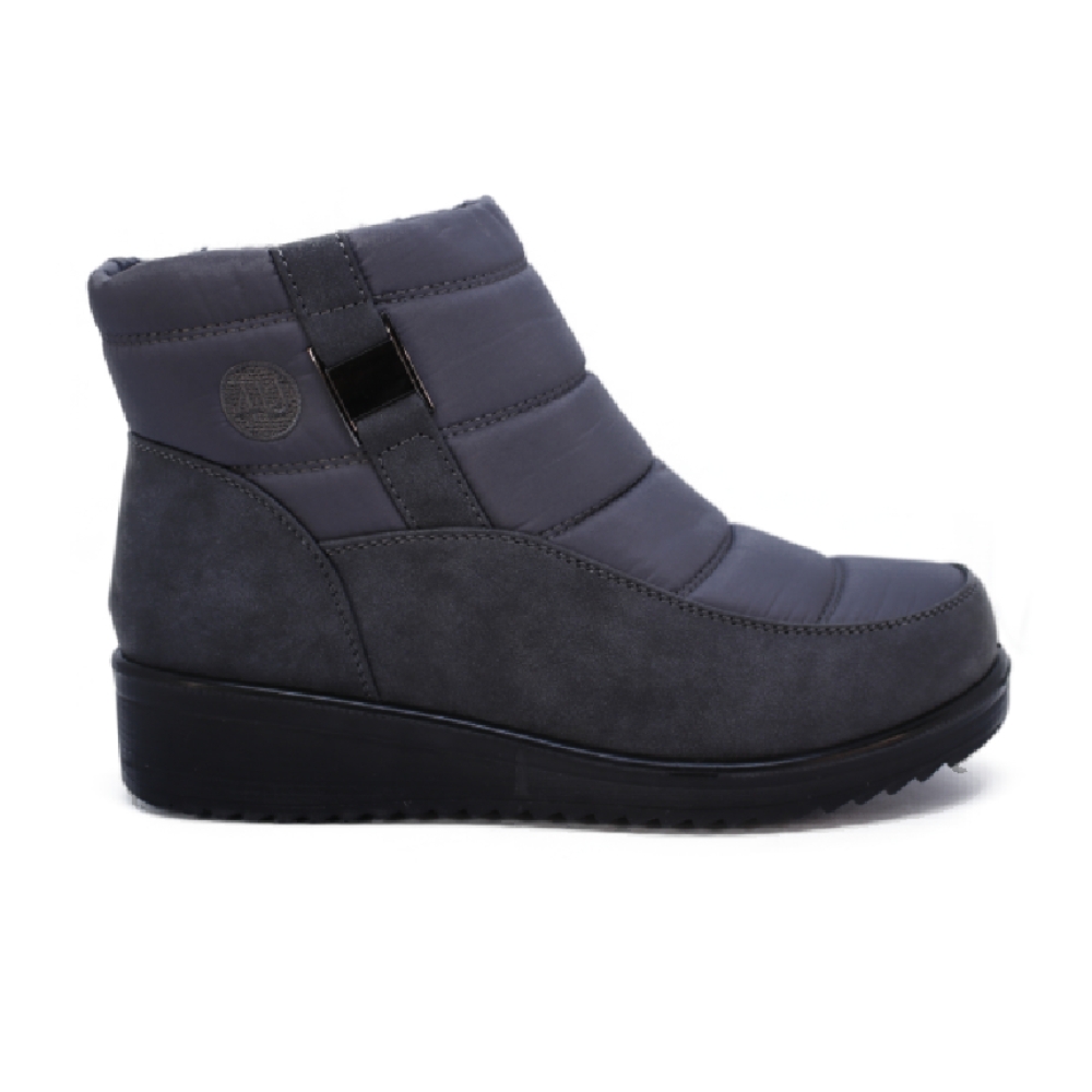 Abrigado y Cómodo: Con un cañón acolchado con un patrón de paneles horizontales y un forro interior cálido, este botín asegura que tus pies permanezcan abrigados incluso en las temperaturas más bajas.