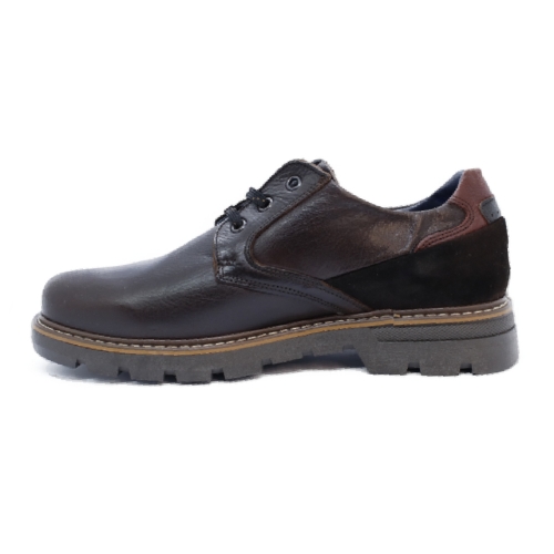 Zapato en piel vacuno engrasado, forro microfibra absorbente blue, suela modelo Toledo en material extralight y plantilla termoconfortada en microfibra absorbente extraíble para mejor calce e higiene. Fabricado en España