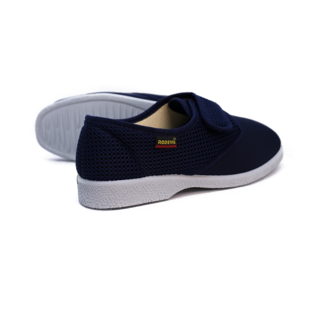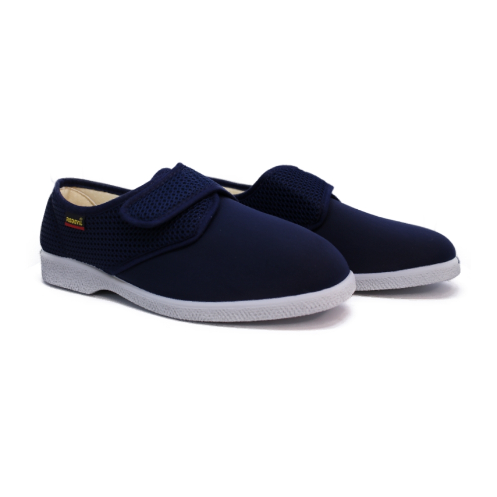 Este calzado combina la resistencia de la lona con la flexibilidad de la licra elástica en la zona del empeine, adaptándose a la forma del pie sin presiones ni rozaduras. Su sistema de cierre adherente  permite un ajuste personalizado y facilita enormemente el calce, siendo ideal para personas con movilidad reducida.
