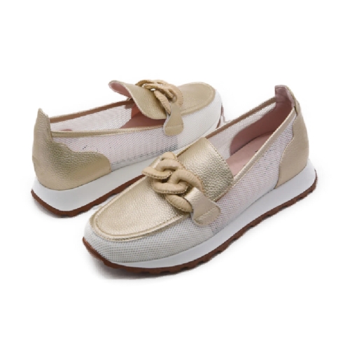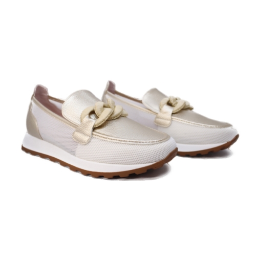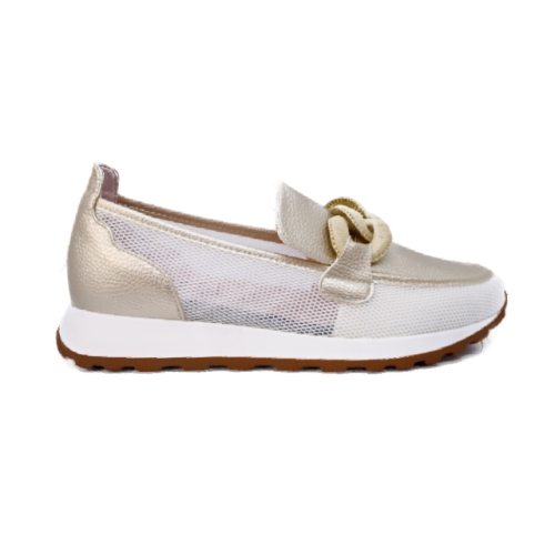 Mocasín sport con suela volumen elaborado en combinación de materiales. Diseño de rejilla y adorno de maxicadena de eslabones en el empeine. Este zapato , gracias a su suela, amortigua cada paso aportando flexibilidad y confort en la pisada. Incorpora plantilla extraíble termoconfortada