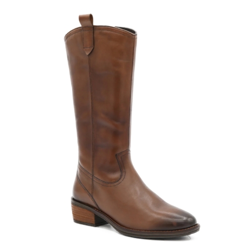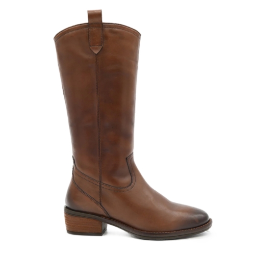 Estas botas altas de piel color cuero son la definición de elegancia atemporal con un toque western. Su diseño cowboy minimalista con caña alta y tacón bajo de madera las convierte en un fondo de armario imprescindible. El acabado cuero natural aporta calidez, versatilidad y un aire sofisticado que realza cualquier look.