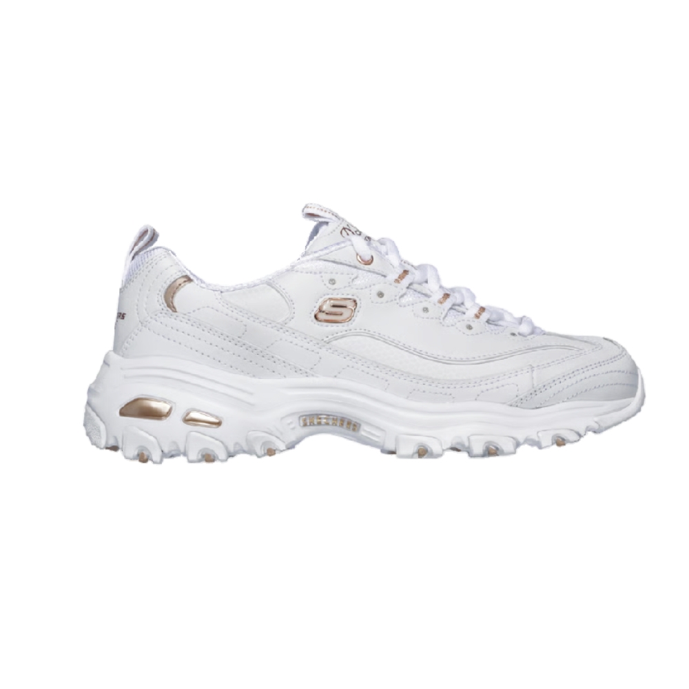 Pon tu mejor pie adelante con un look clásico revitalizado con la Skechers D'Lites® - Fresh Start. Modelo deportivo de cordones con parte superior de piel lisa y piel sintética, y plantilla con amortiguación SKECHERS Air Cooled Memory Foam®.