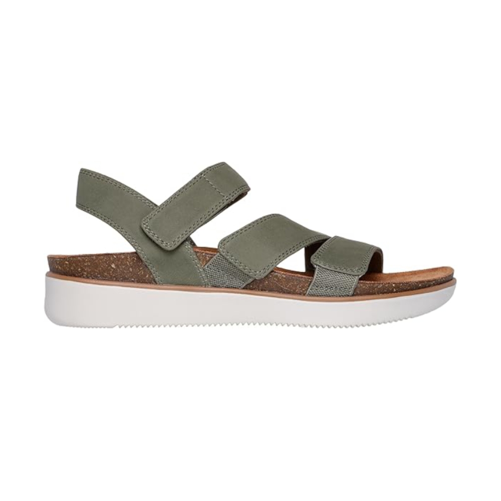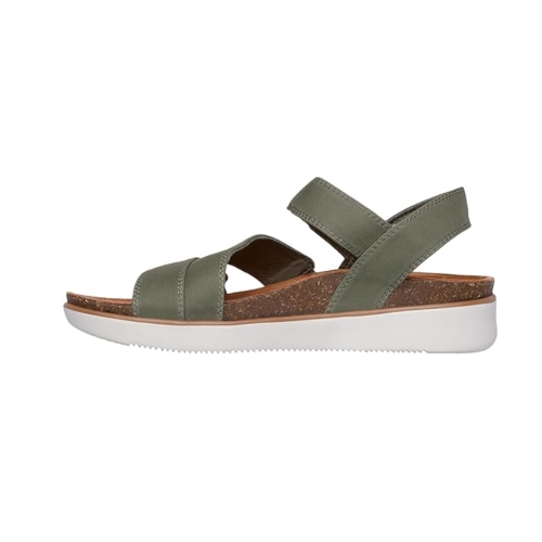 Haz que tu estilo y comodidad estén fuera de la vista con Skechers Lifted Comfort. Esta sandalia cuenta con un cuero sintético suave con una correa de talón ajustable, también detalle de suela de corcho y una plantilla acolchada Skechers Memory Foam®.