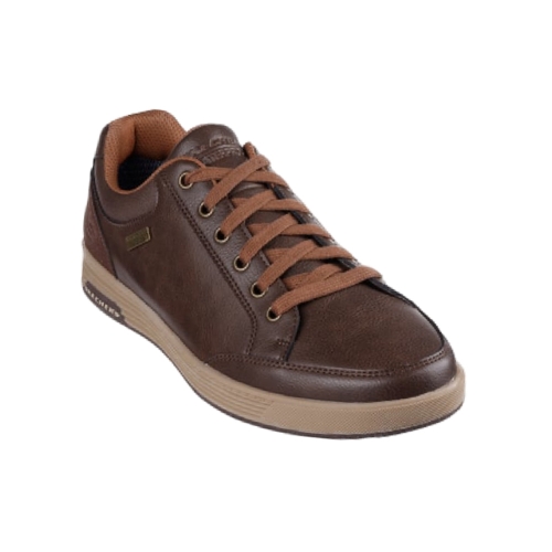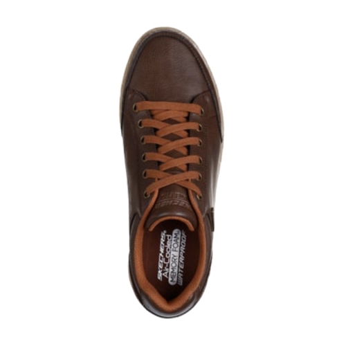 Evita mojarte durante los días de lluvia con la elegancia informal de las Skechers Cavell - Sparkman. Este modelo waterproof con cordones presenta una parte superior de piel sintética lisa con ribete en el talón y una cómoda plantilla con amortiguación Skechers Air-Cooled Memory Foam®.