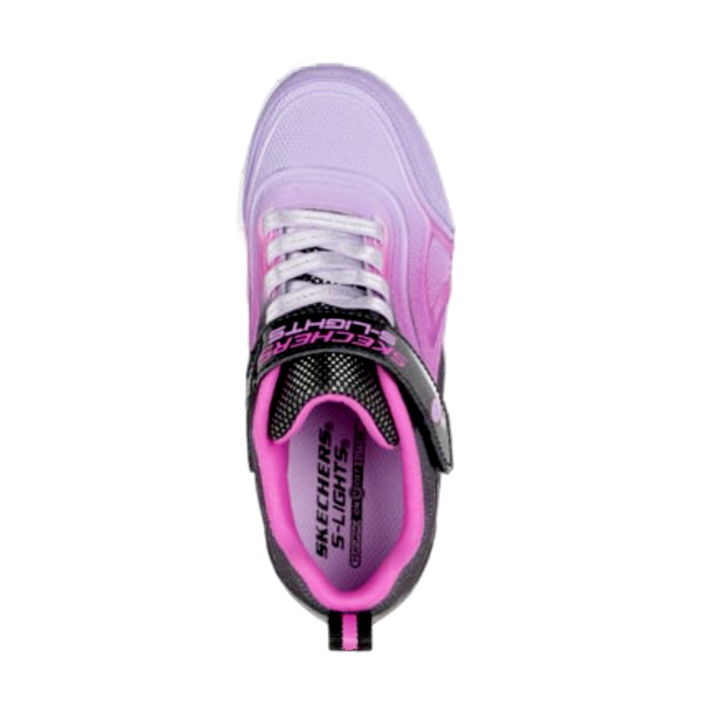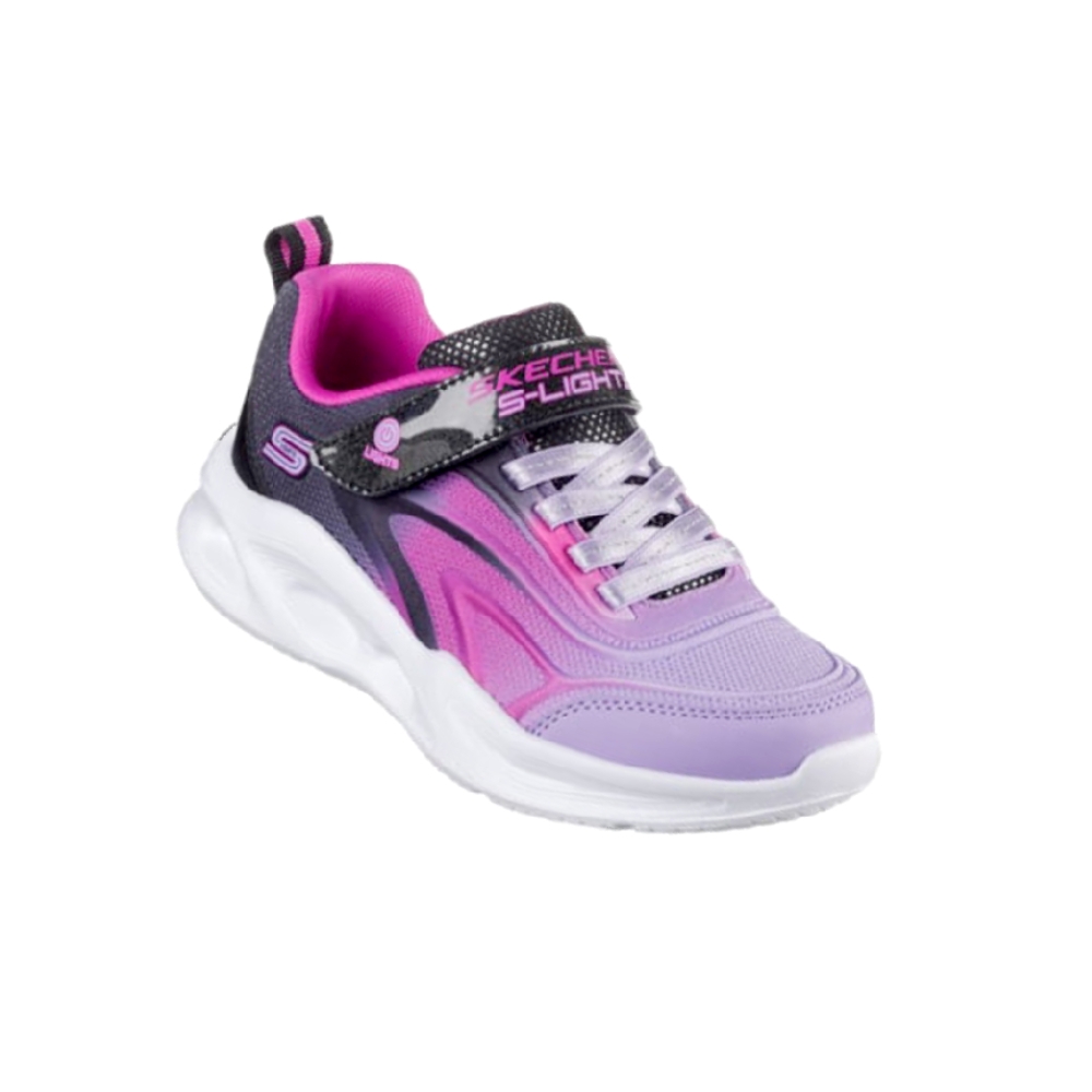 Ilumina el patio con los divertidos colores de las Skechers S-Lights®: Sola Glow - Color Breeze. Este diseño con cierre Skechers Adaptive Closure presenta una parte superior de malla degradada y material sintético con detalles en relieve, correa ajustable en el empeine, cordones fijos elásticos y una media suela con luces y buena amortiguación.