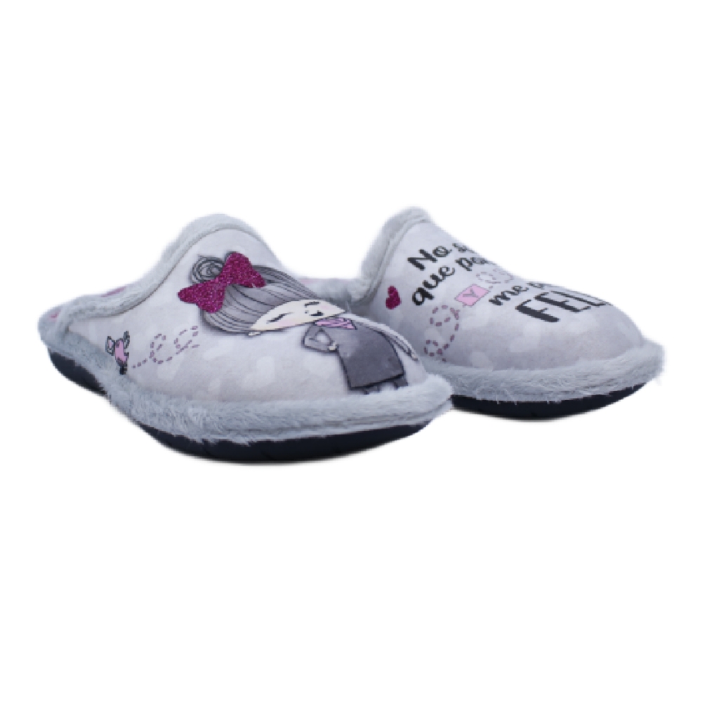 Chinela de mujer realizada en suave tejido ideales para calentar tus pies. Suela de goma antideslizante y plantilla extraible termoconfortada.