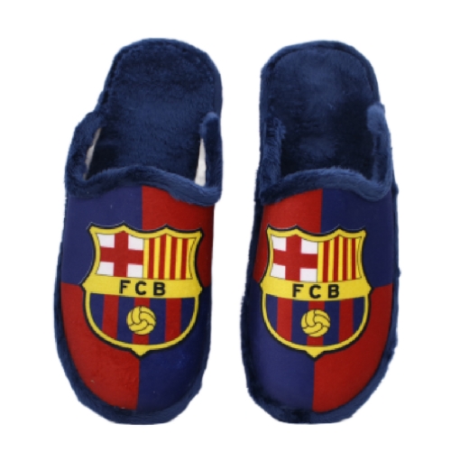 Zapatillas de casa con el escudo y los colores del Barcelona. Fabricadas en textil muy suave con pelo. Plantilla extraíble. Piso cómodo de goma muy flexible.
