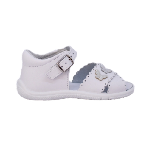 Con un diseño clásico y delicado, esta sandalia para niña es ideal para acompañar sus primeros pasos con estilo y comodidad. Fabricada en piel natural lavable, suave, adaptable y transpirable, garantiza la máxima frescura y confort durante todo el día. Su bonito acabado con festones en la pala y un tierno adorno de lacito le aporta un toque dulce y elegante.