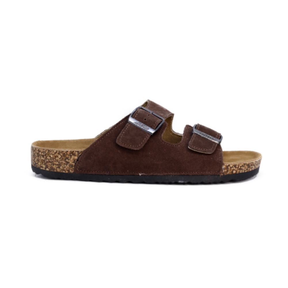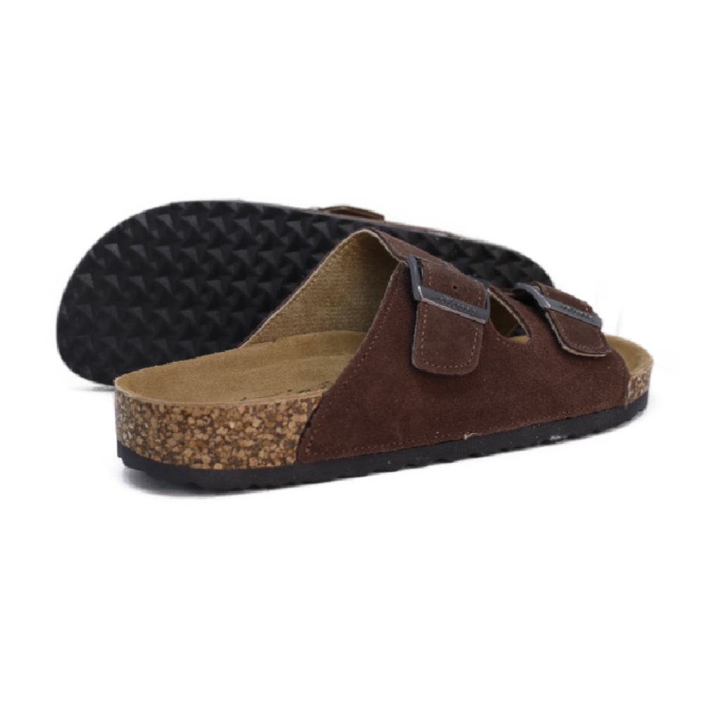 Materiales: Presenta un acabado en color Moka (marrón oscuro) con una base anatómica que imita el corcho, proporcionando confort en cada pisada.