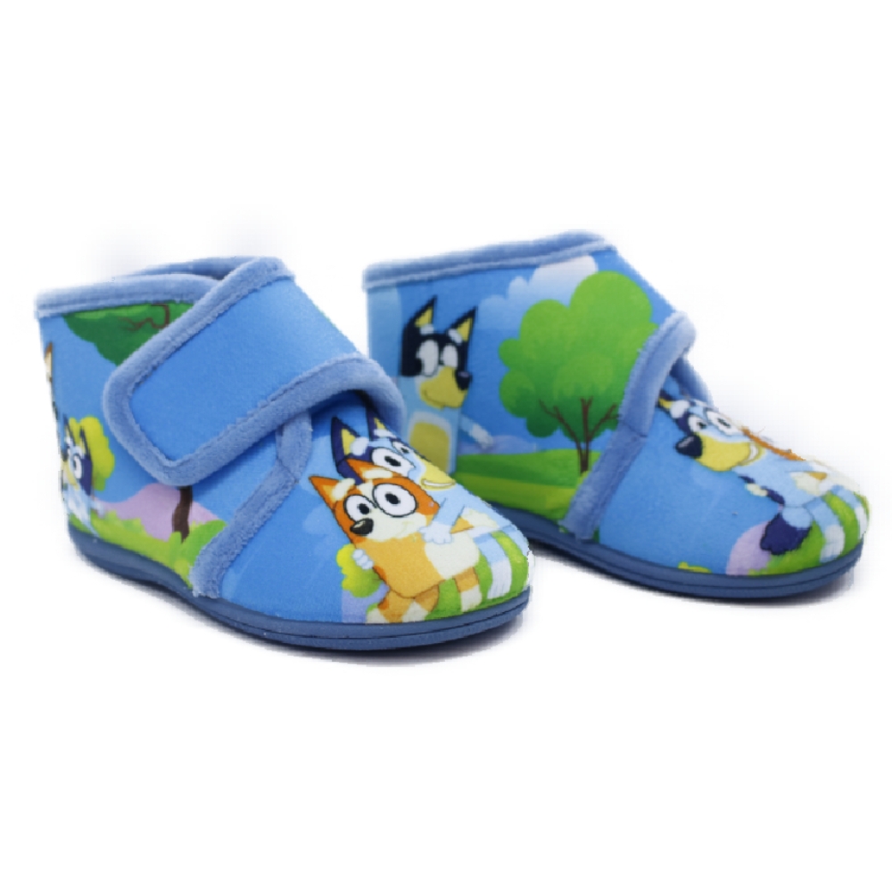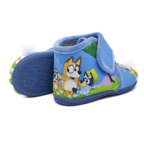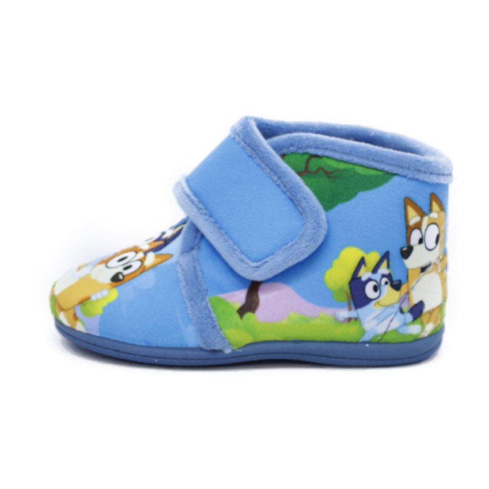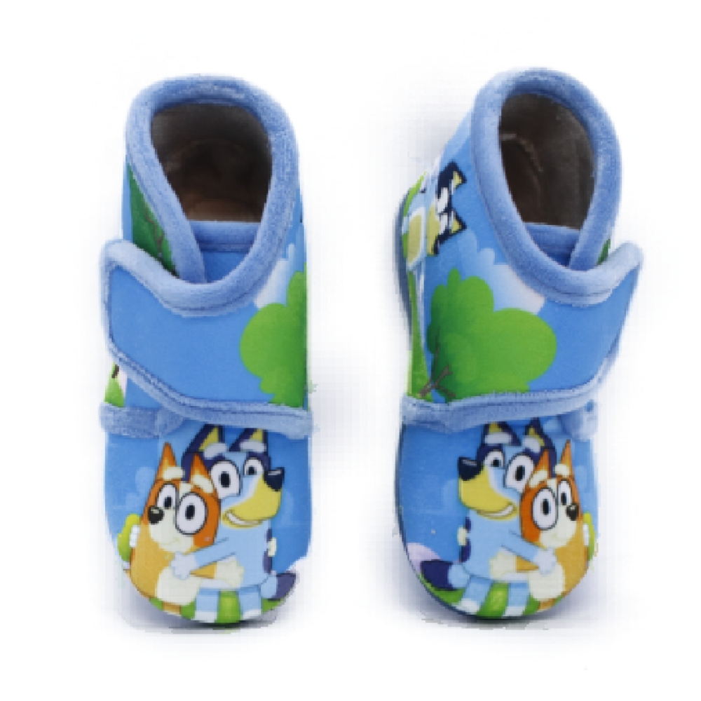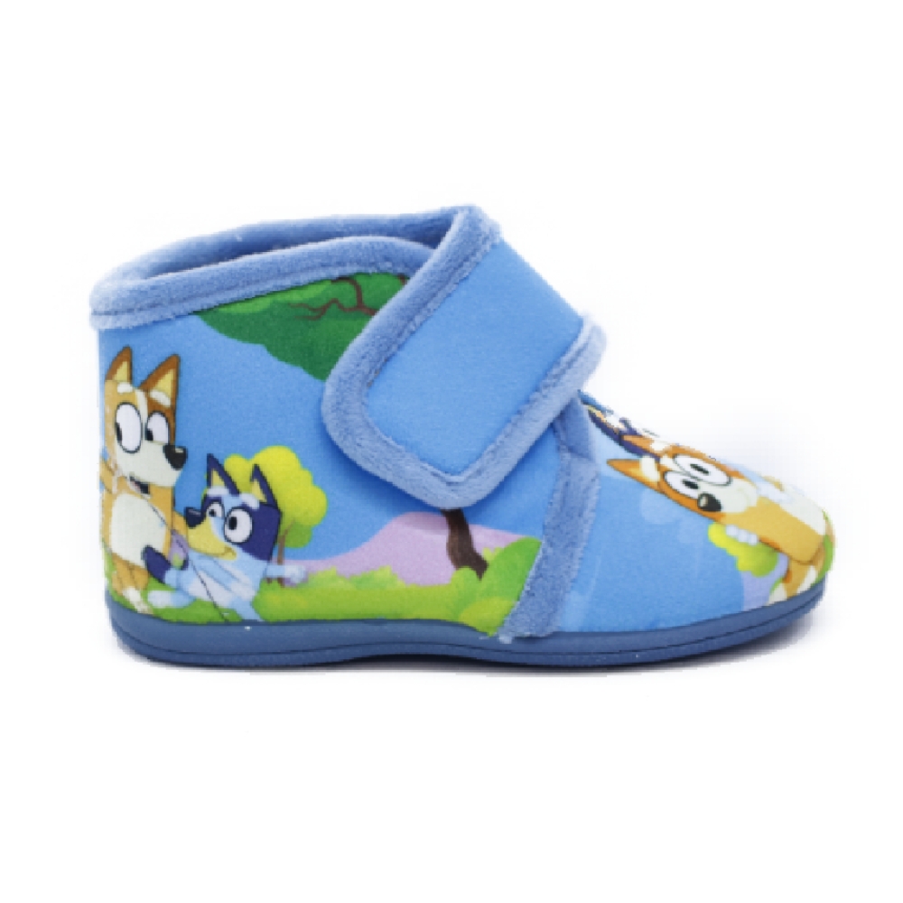 Zapatillas de casa niña y niño de Vulpeques con dibujo de la patrulla canina en color azul celeste, un dibujo clásico para los más peques de la casa, con cierre adherente y suela de goma antideslizante. Fabricadas en España. Unas zapatillas que podrás tener en casa como en el colegio.