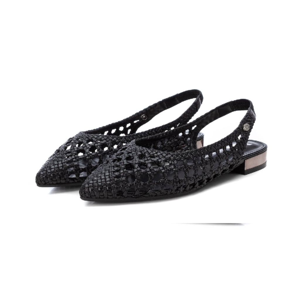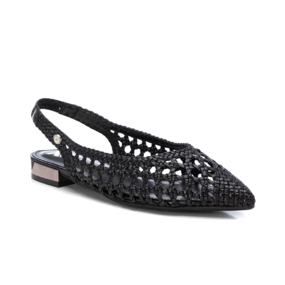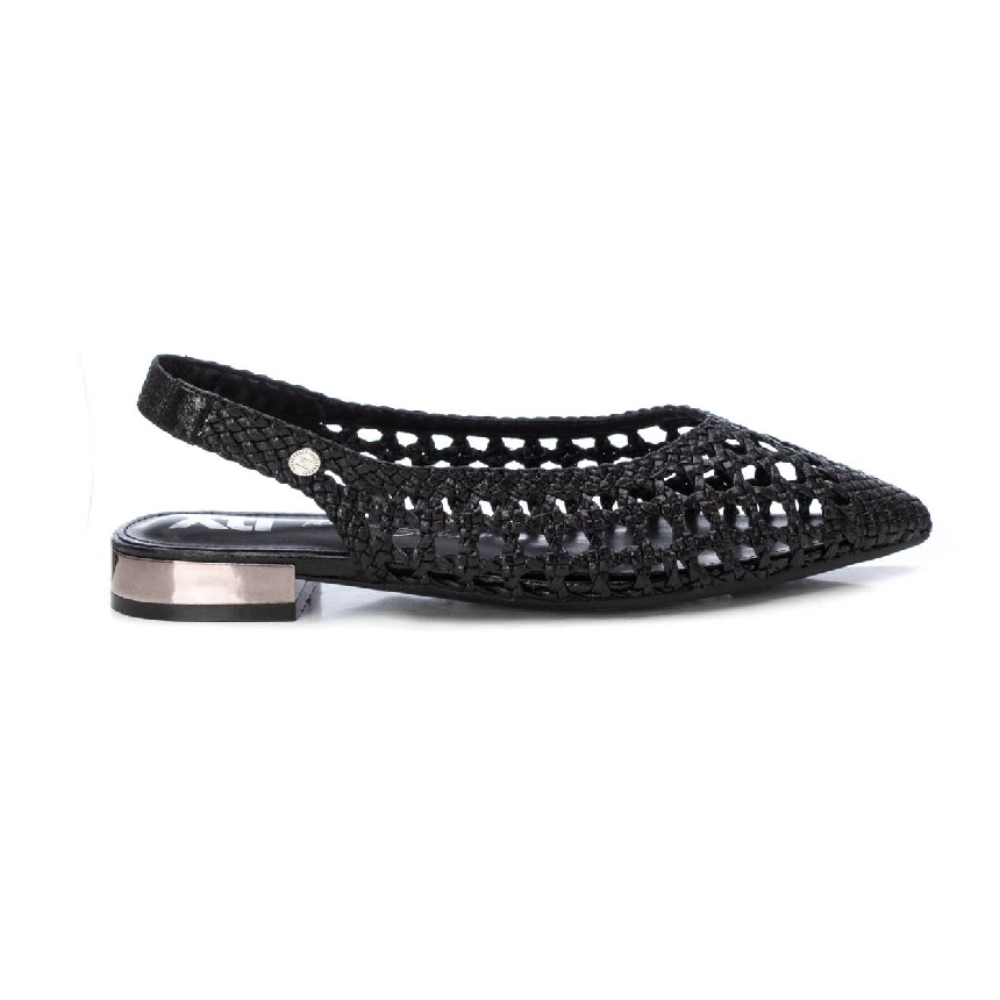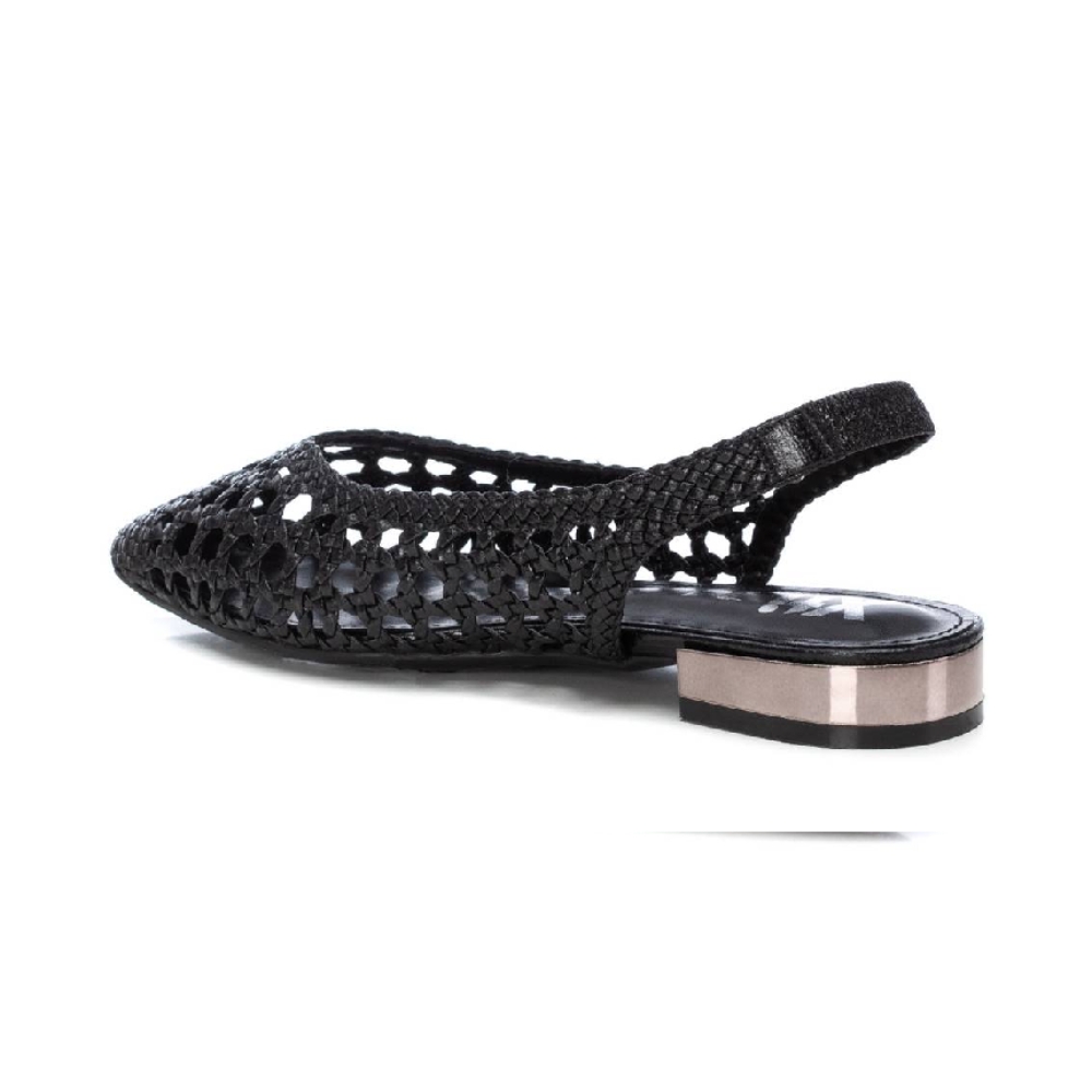 Zapato destalonado de mujer, de la marca Xti. Fabricado en material imitación piel con acabado metalizado. Modelo trenzado con pulsera elastica en el tobillo con muy buena sujeción. Ideal para todos tus conjuntos.Este modelo ha obtenido el certificado vegano por la organización mundial PETA (Organización de los derechos de los animales).