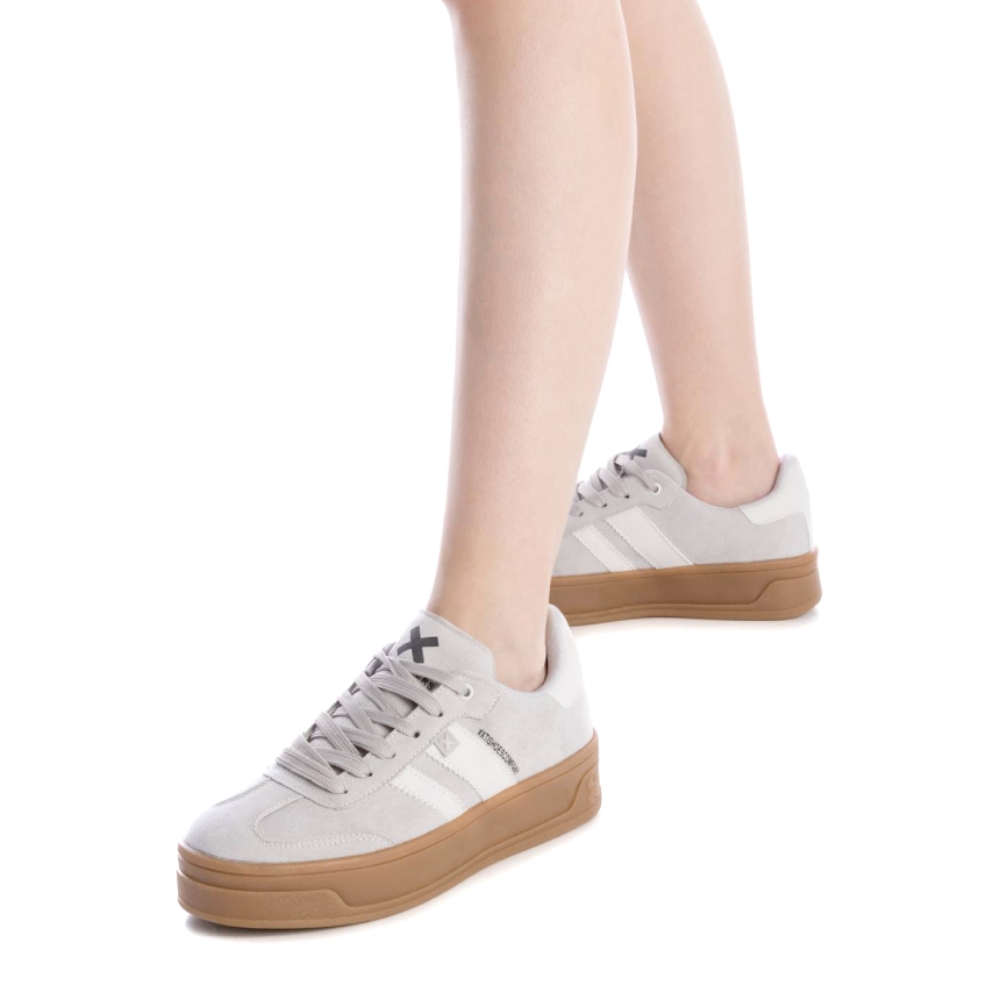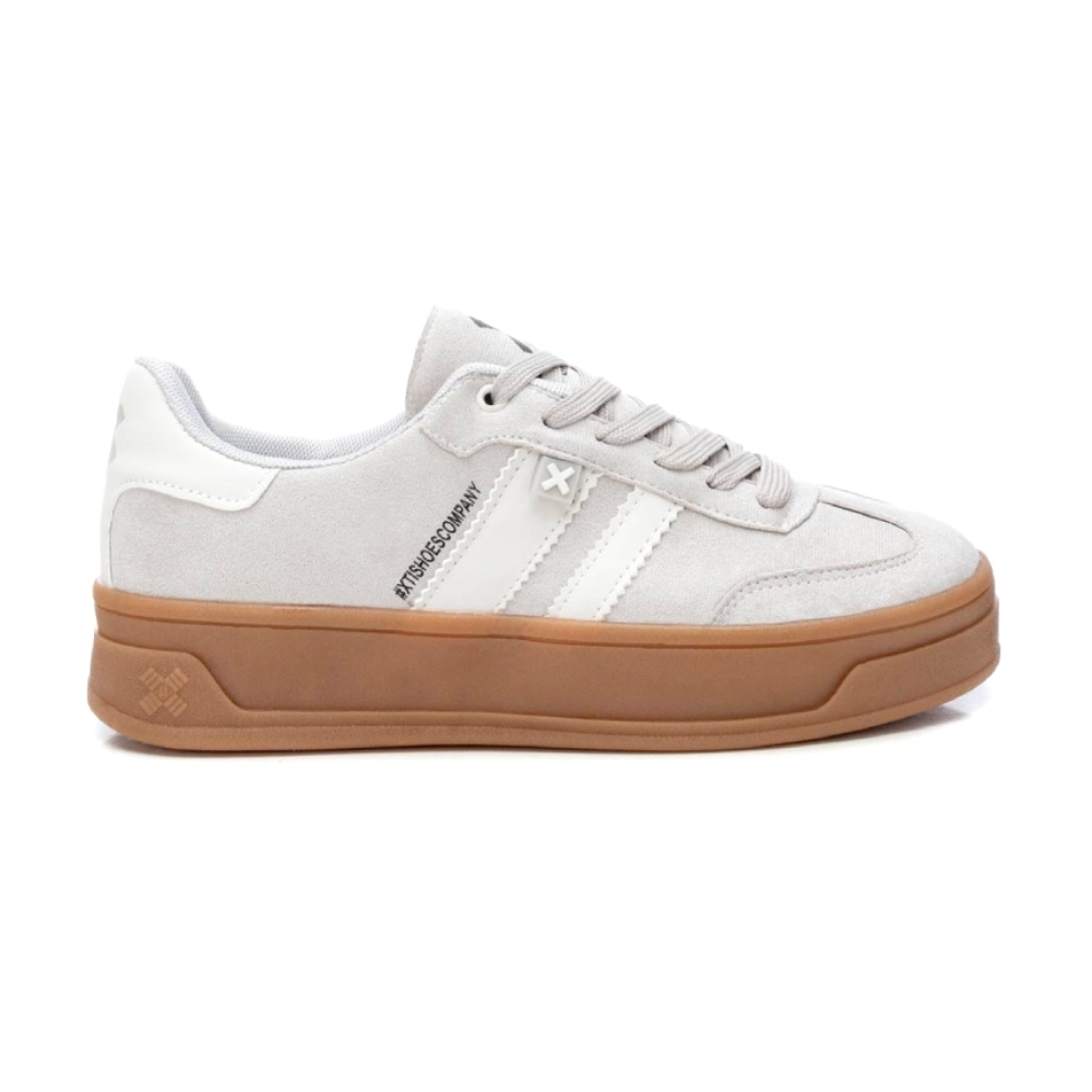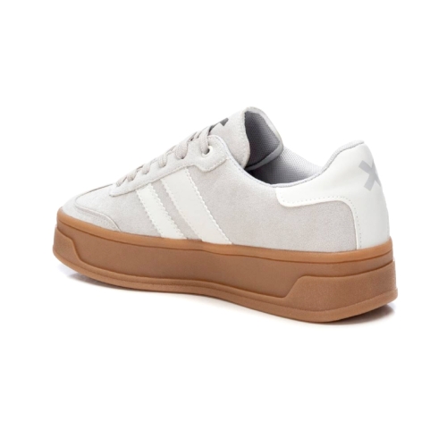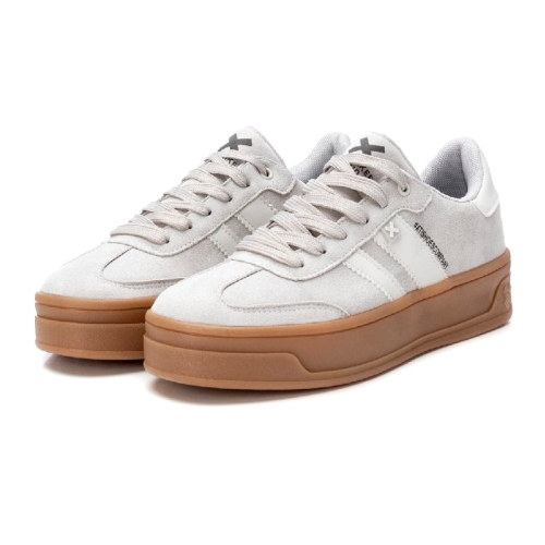 Zapatillas de mujer, de la marca Xti. Fabricadas en material antelina. Precioso modelo estilo retro con detalles de bandas en material que imita a la piel combinadas en diferentes colores. Ideal para cualquier outfit. Imprescindibles para este verano. Suela plana y antideslizante, en claro tono caramelo. Este modelo ha obtenido el certificado vegano por la organización mundial PETA (Organización de los derechos de los animales).