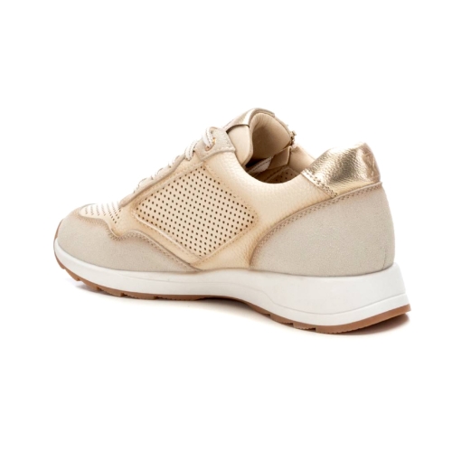 Zapatilla de mujer, de la marca Xti. Fabricada en material que imita la piel. Material troquelado en el lateral y en la puntera del modelo. Cierre mediante cremallera en el lateral para facilitar ponértelas. Detalle metalizado en el talón. Con plantilla extraíble. Este modelo ha obtenido el certificado vegano por la organización mundial PETA (Organización de los derechos de los animales).