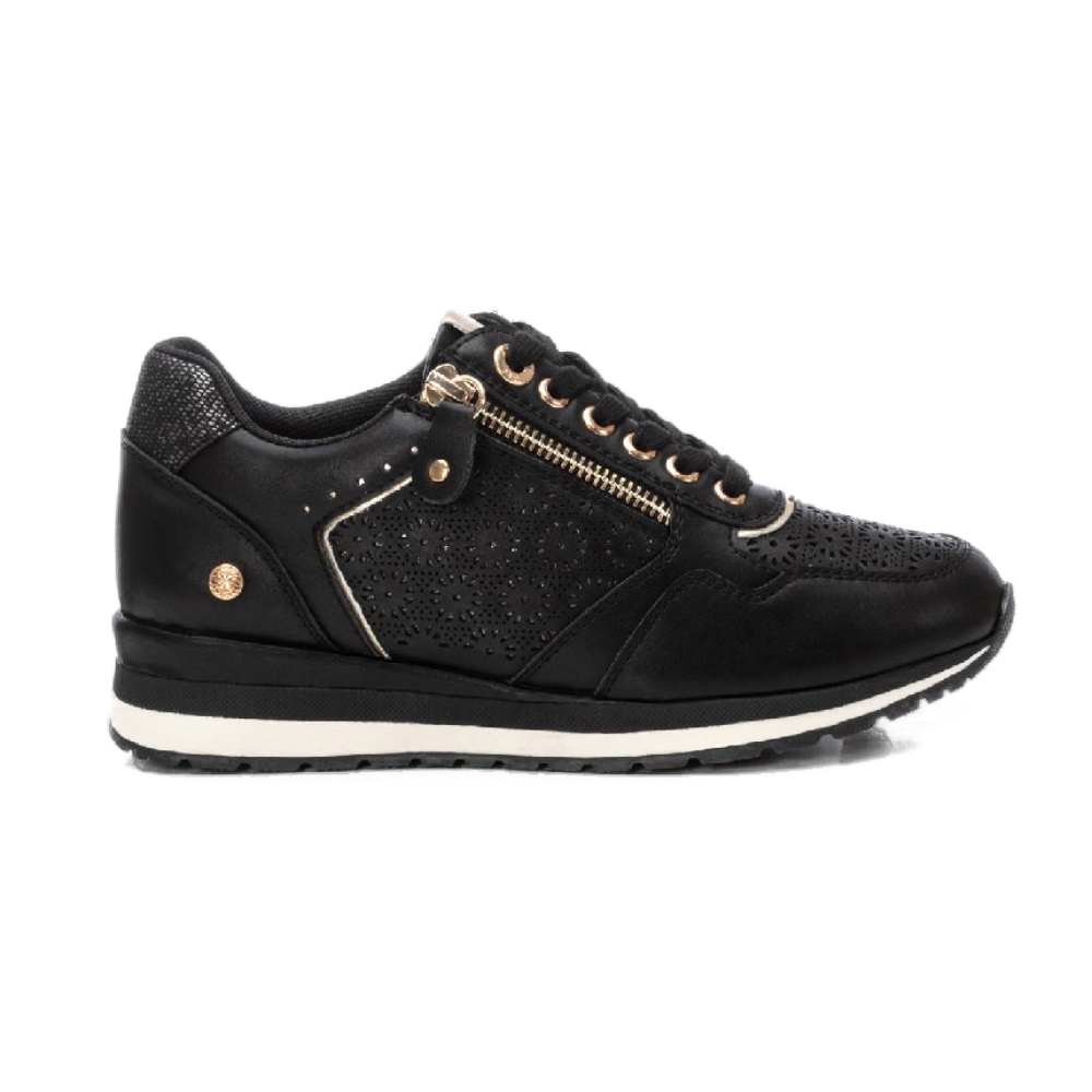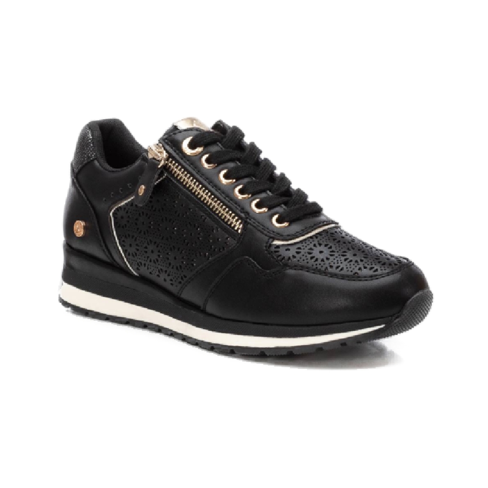 Zapatilla casual de mujer, de la marca Xti. Está fabricada en material que imita a la piel. Bonito troquelado en el lateral. Cordones al tono y cremallera con función en el lateral. Cuña bicolor con suela de goma antideslizante. Con plantilla extraíble. Este modelo ha obtenido el certificado vegano por la organización mundial PETA (Organización de los derechos de los animales).