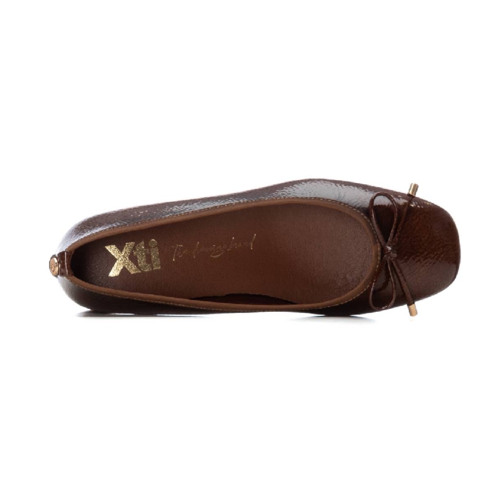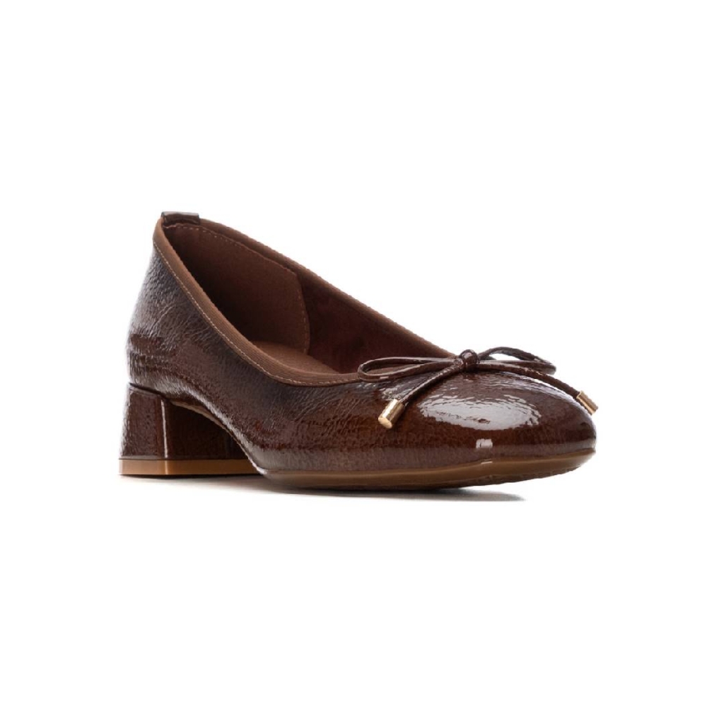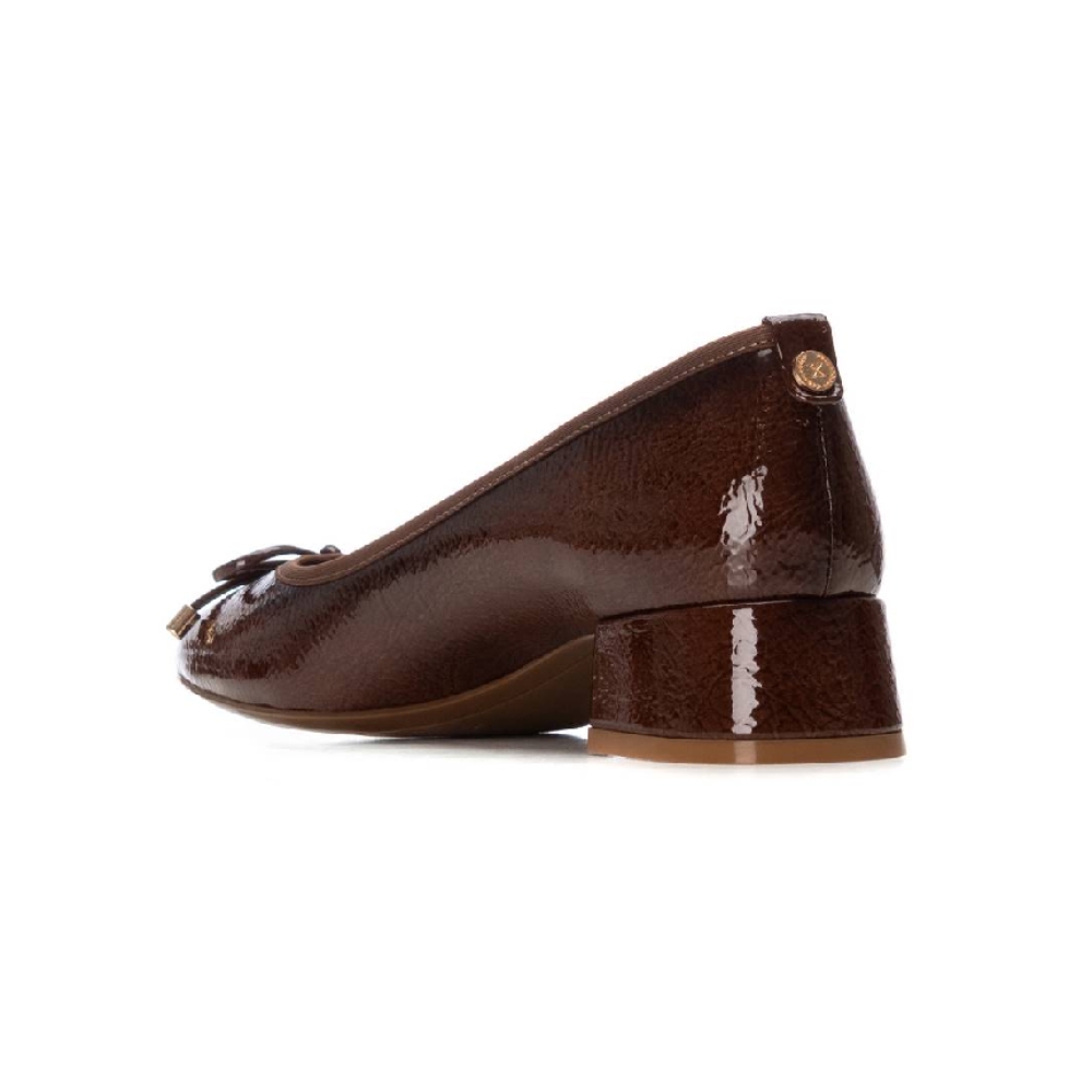 Zapato de mujer, de la marca Xti. Fabricada en charol. Con detalle de un bonito lazo. Cómodo tacón de 4 cm con suela de goma antideslizante.