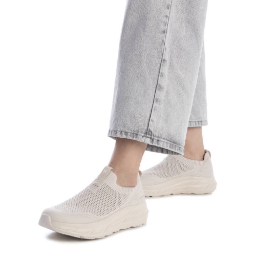 Estas zapatillas XTI de diseño tipo slip on ofrecen un ajuste rápido y sin cordones, con un upper de malla transpirable que se adapta al pie como un guante. Su plantilla extraíble con tecnología Memory Foam proporciona una amortiguación superior y confort durante todo el día, reduciendo la fatiga en cada pisada. La suela ligera y antideslizante asegura estabilidad y agarre en cualquier superficie, mientras su estética moderna y minimalista, en color beige total, combina fácilmente con looks deportivos o casuales. 100% veganas y certificadas por PETA, para un estilo consciente y responsable.
