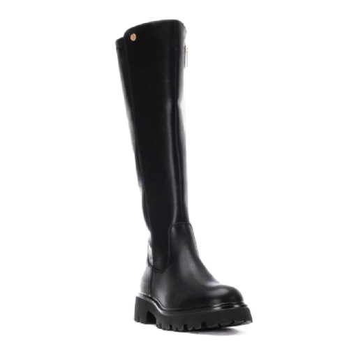 Bota de mujer, de la marca Xti. Fabricada en un material que imita la piel. Cierre cremallera lateral, además de ser un modelo elástico que proporcionará un mayor ajuste. Caña alta. Tacón 4 cm grueso y suela antideslizante. Este modelo ha obtenido el certificado vegano por la organización mundial PETA (Organización de los derechos de los animales).