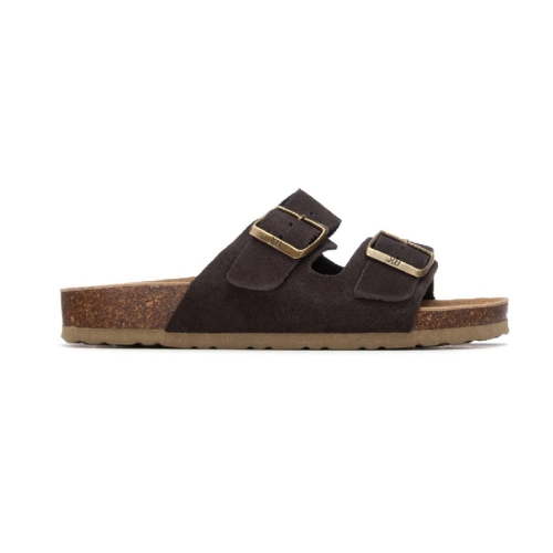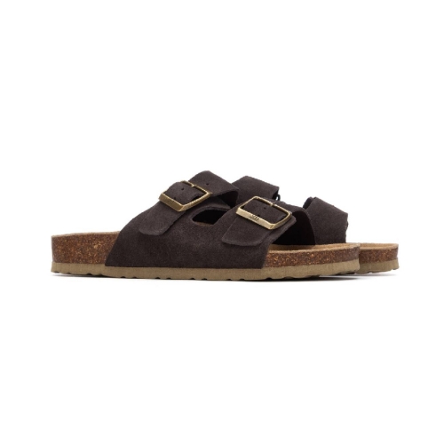 Doble Hebilla Ajustable: Cuenta con dos tiras anchas sobre el empeine, equipadas con hebillas metálicas de acabado envejecido que permiten regular el ajuste de forma precisa según la necesidad de cada pie.