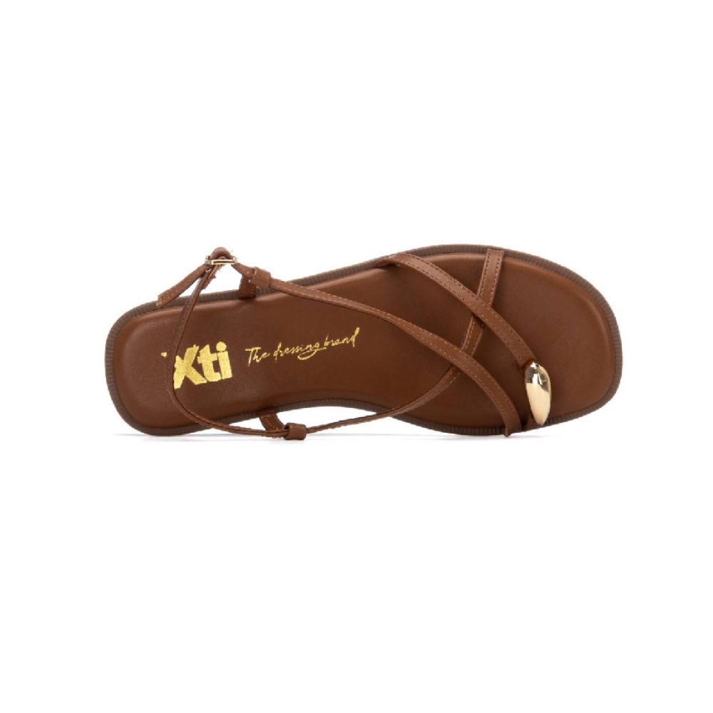 Añade un toque de calidez y elegancia natural a tus pasos con esta sandalia plana de mujer de Xti. Su diseño de inspiración minimalista y tono camel la convierten en el accesorio perfecto para combinar con la luz del verano.