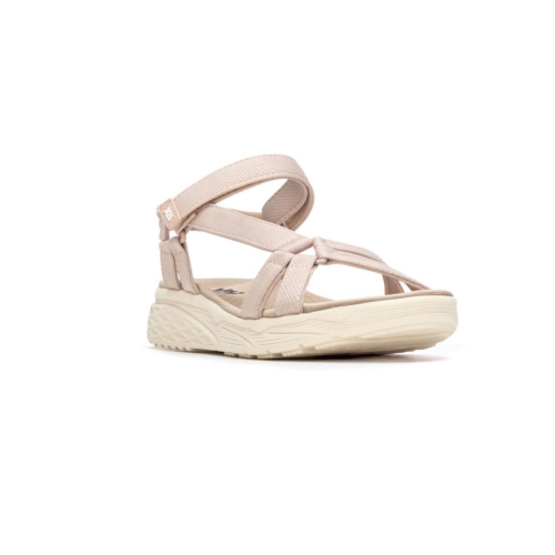 Diseño de Tiras Cruzadas: Cuenta con bandas textiles suaves que se entrelazan en la parte delantera, proporcionando una sujeción firme que se adapta al movimiento natural del pie.