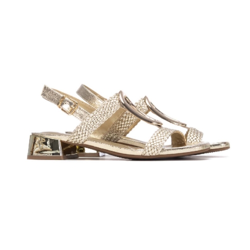 Detalle Metalizado de Impacto: Destaca un adorno metálico dorado en la parte frontal del empeine, que aporta un toque de luz y distinción, convirtiéndola en la opción ideal para eventos y fiestas.