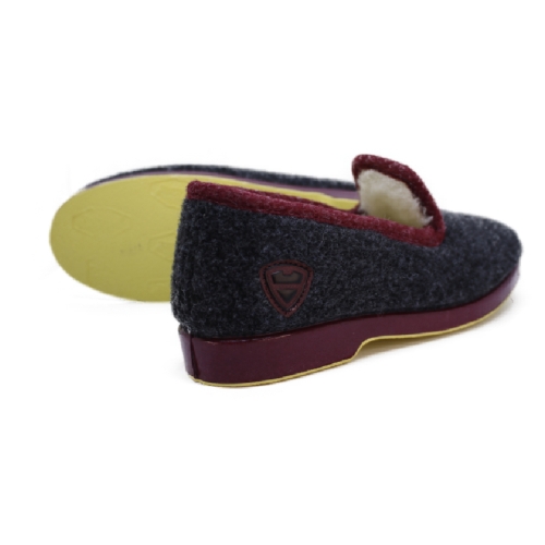 El forro interno, visible en el borde, es de un tejido suave y cálido que envuelve el pie, garantizando una sensación de bienestar desde el primer momento.