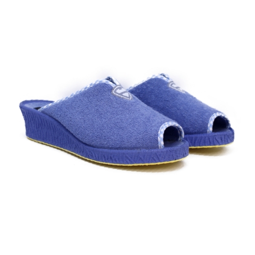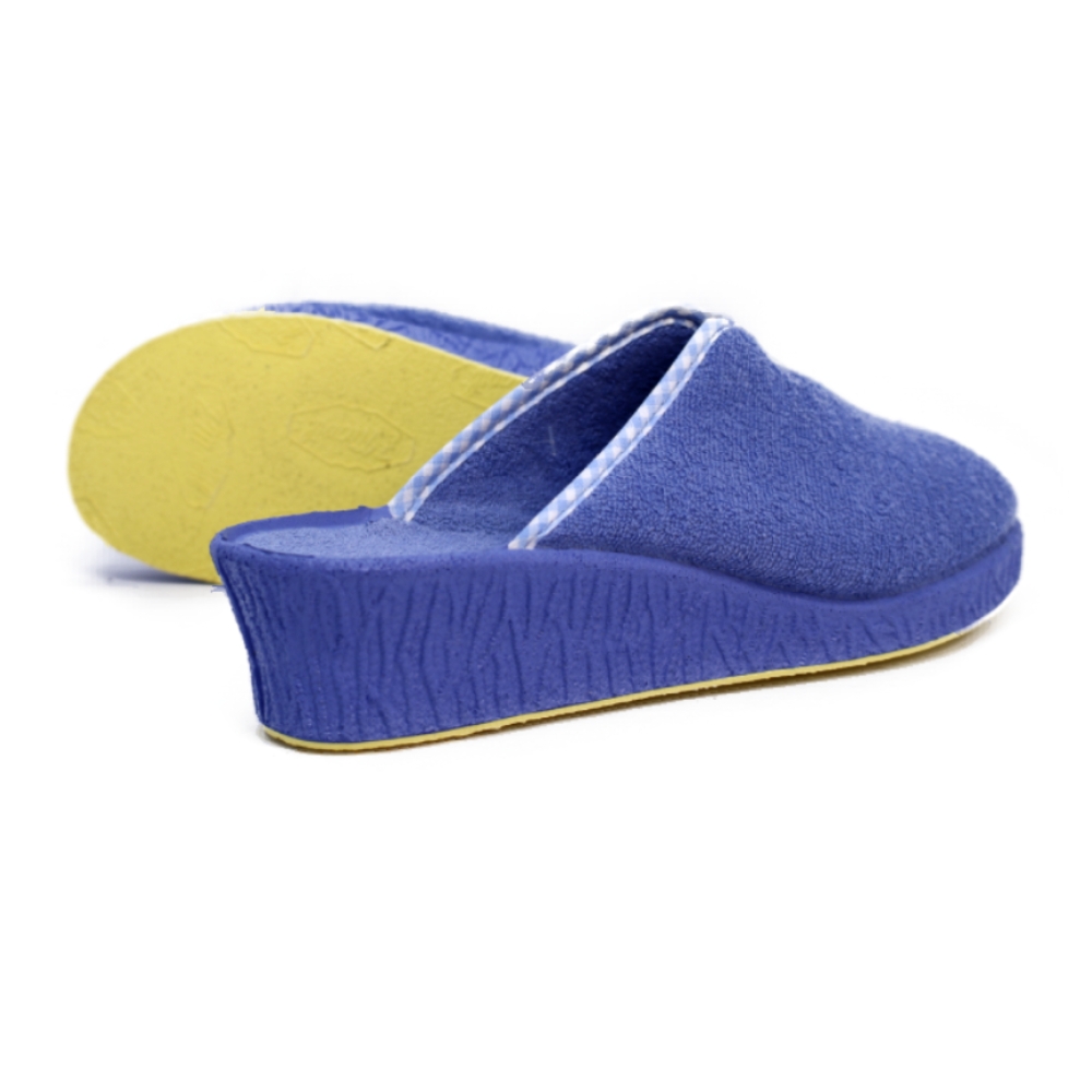 Disfruta de la máxima comodidad en casa con estas zapatillas de la marca Z.Mavil. Diseñadas específicamente para la temporada de primavera-verano, cuentan con un diseño de punta abierta que permite una excelente transpiración. Su cuña proporciona el soporte ideal para el pie, mientras que el acabado en rizo o toalla de color azul ofrece una textura suave y fresca al tacto. Son ligeras y están fabricadas con materiales de calidad, siendo un producto representativo del calzado hecho en España.