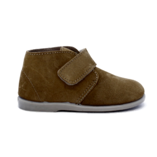 Suave bota unisex realizada en serraje marrón cuero que se ajusta perfectamente a su pie. En su interior tiene una plantila de piel extraible totalmente plana. Suela de goma flexible y antideslizante. Un zapato delicado para los pies más delicados. Cumple todos aquellos requisitos que un calzado barefoot debe tener: suela plana, flexibilidad sin límites, sin contrafuertes ni refuerzos, ajuste regulable mediante cierre  adherente y un diseño irresistible.